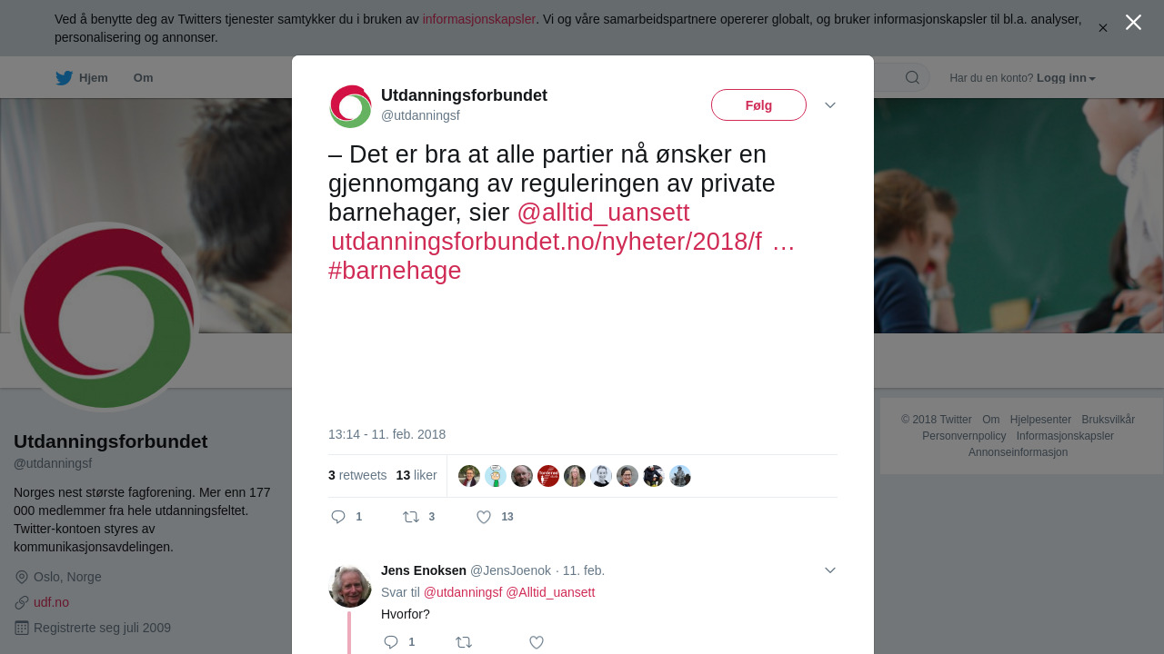 RT @utdanningsf: – Det er bra at alle partier nå ønsker en gjennomgang av reguleringen av private barnehager, sier @alltid_uansett… https://t.co/LPqAUlICqC