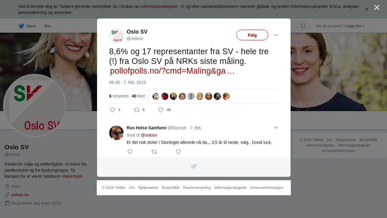 RT @oslosv: 8,6% og 17 representanter fra SV - hele tre (!) fra Oslo SV på NRKs siste måling. https://t.co/QOITXvXy4T
