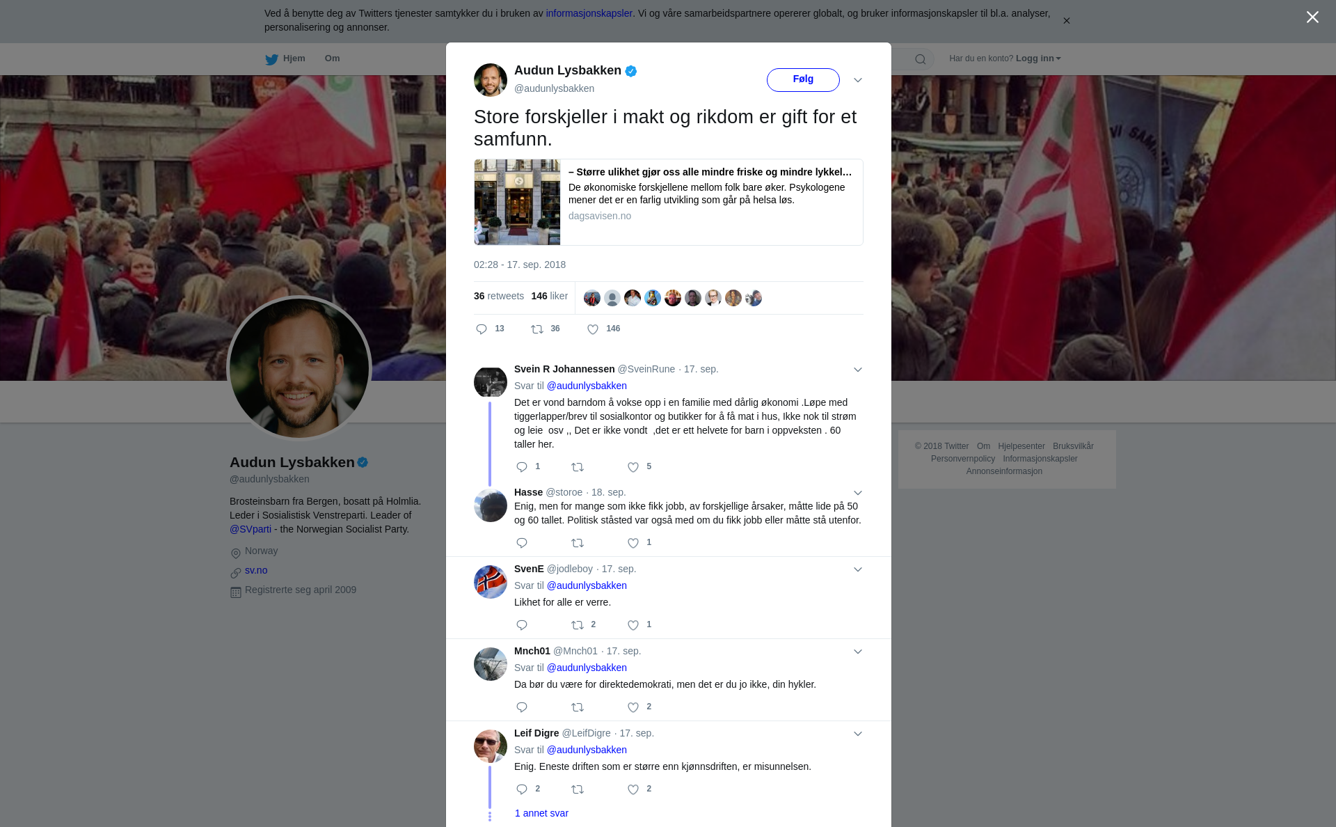 RT @audunlysbakken: Store forskjeller i makt og rikdom er gift for et samfunn. https://t.co/4m58q88AvG