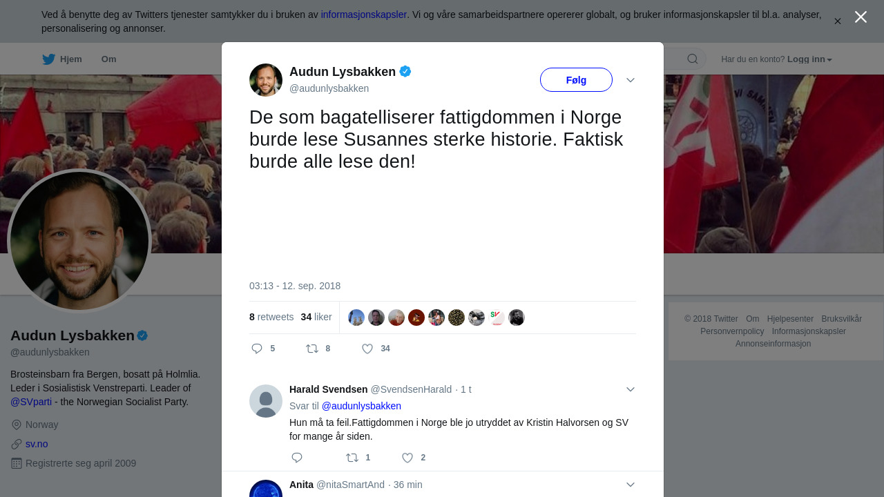 RT @audunlysbakken: De som bagatelliserer fattigdommen i Norge burde lese Susannes sterke historie. Faktisk burde alle lese den! https://t.co/uQH4Asor3H