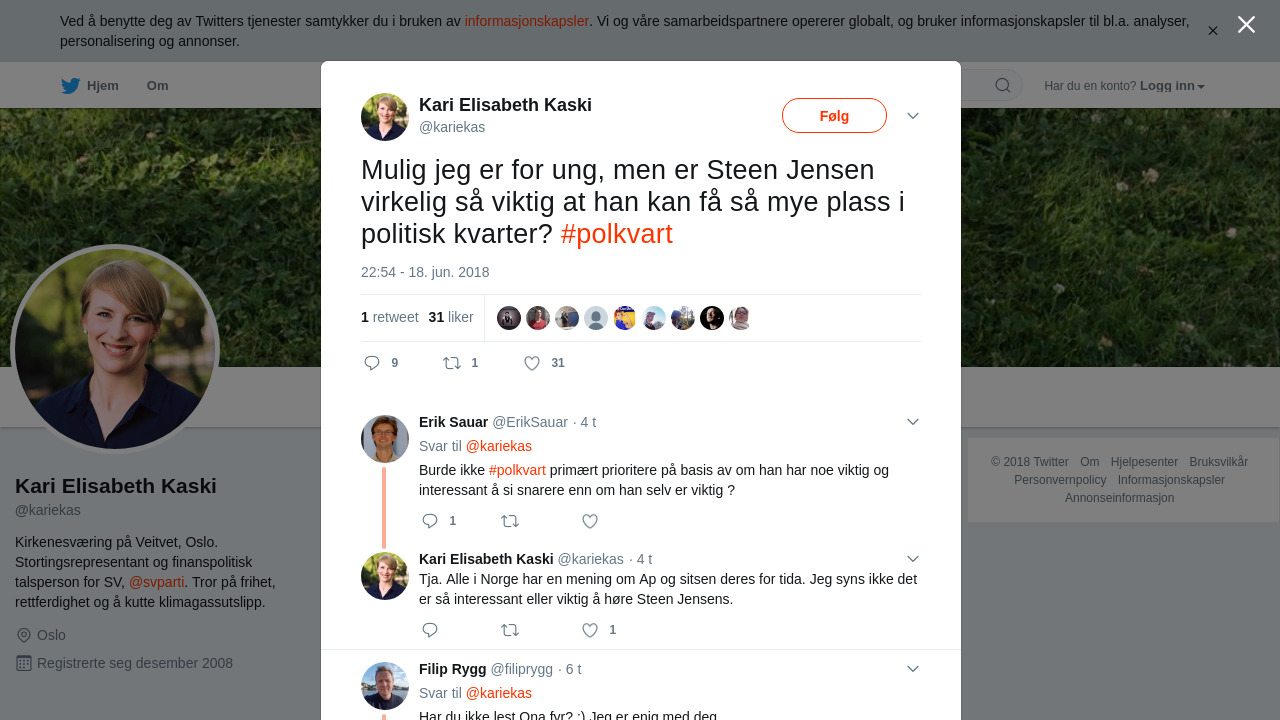 Mulig jeg er for ung, men er Steen Jensen virkelig så viktig at han kan få så mye plass i politisk kvarter? #polkvart