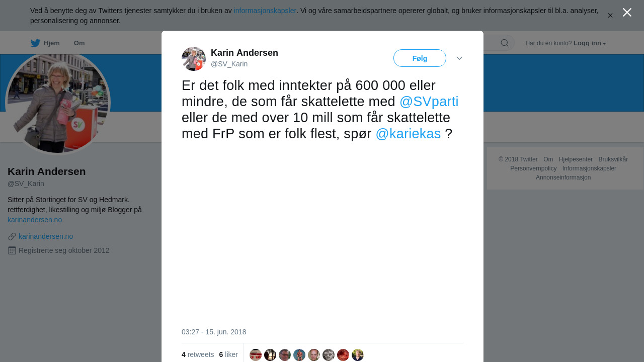RT @SV_Karin: Er det folk med inntekter på 600 000 eller mindre, de som får skattelette med @SVparti eller de med over 10 mill so… https://t.co/px7zYMKNUj