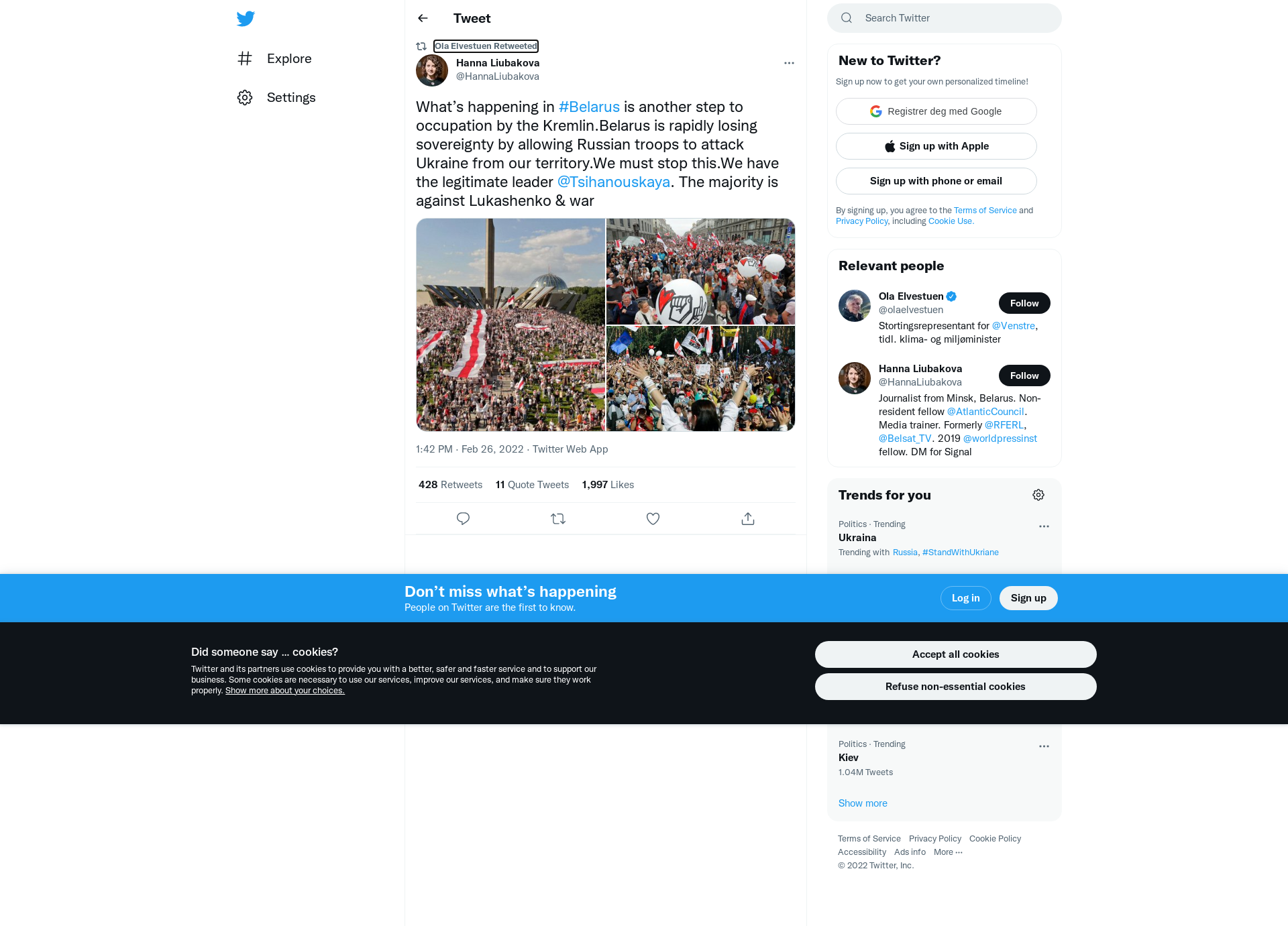RT @HannaLiubakova: What’s happening in #Belarus is another step to occupation by the Kremlin.Belarus is rapidly losing sovereignty by allowing Russian troops to attack Ukraine from our territory.We must stop this.We have the legitimate leader @Tsihanouskaya. The majority is against Lukashenko & war https://t.co/VfQ0rJRUv4
