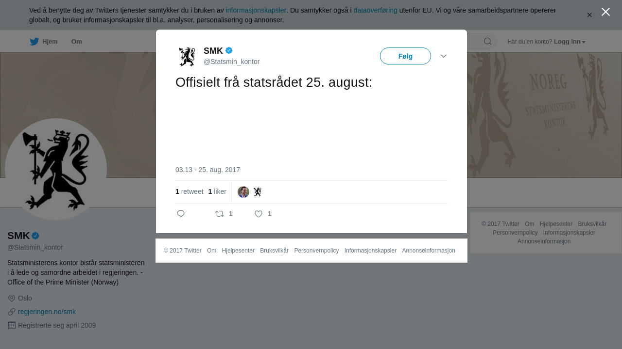 Offisielt frå statsrådet 25. august: https://t.co/ZRuT9KWzPl
