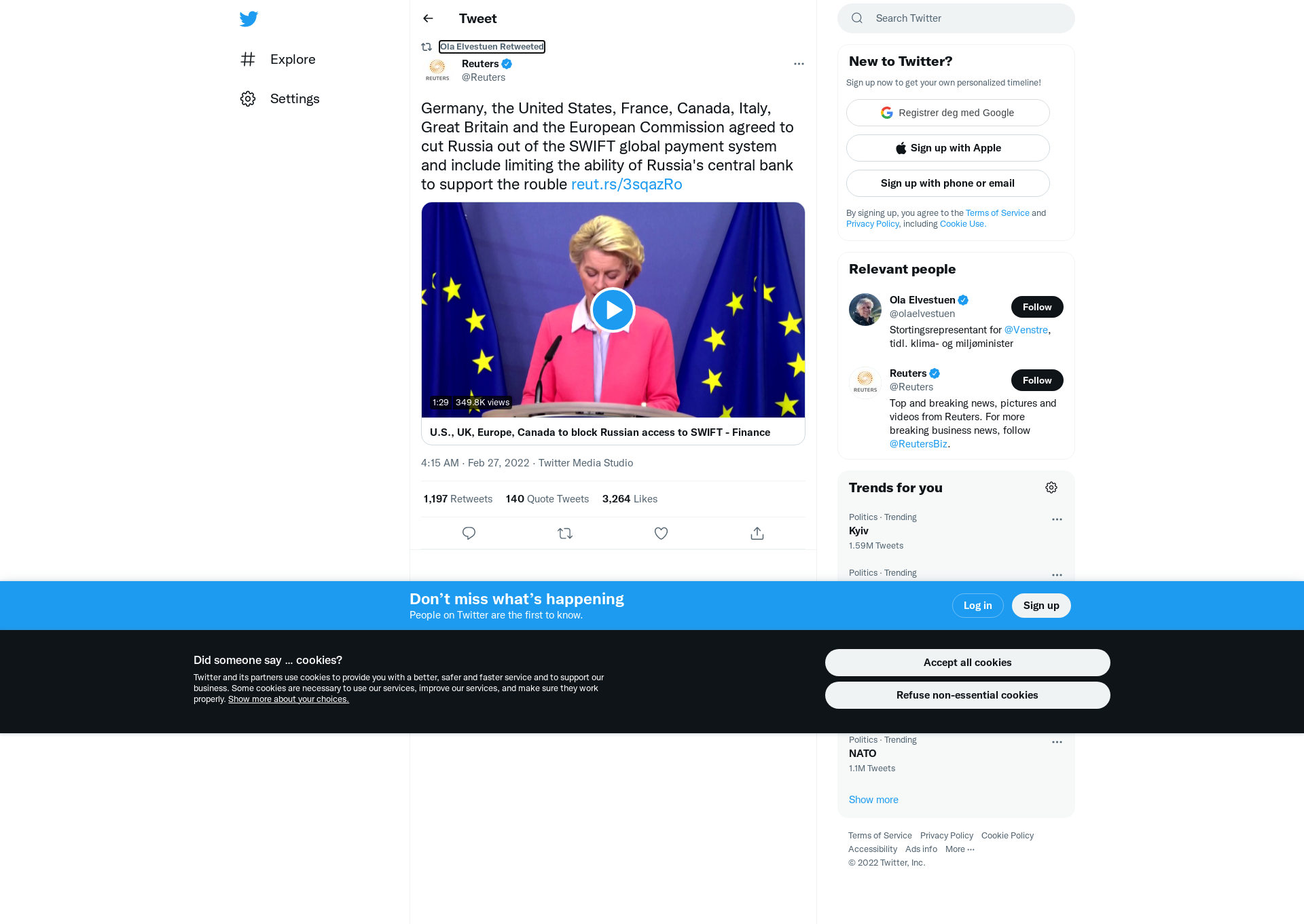 RT @Reuters: Germany, the United States, France, Canada, Italy, Great Britain and the European Commission agreed to cut Russia out of the SWIFT global payment system and include limiting the ability of Russia's central bank to support the rouble https://t.co/m2tkvpMT9v https://t.co/iwmE14XxmB