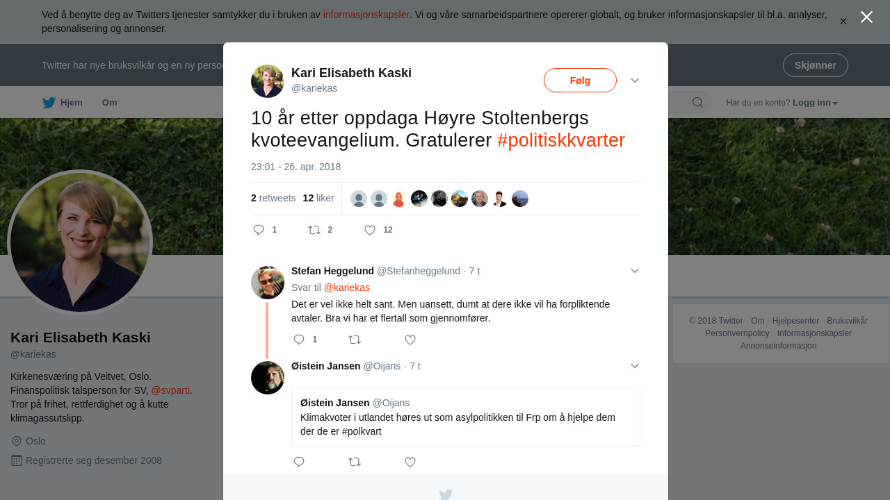 10 år etter oppdaga Høyre Stoltenbergs kvoteevangelium. Gratulerer #politiskkvarter