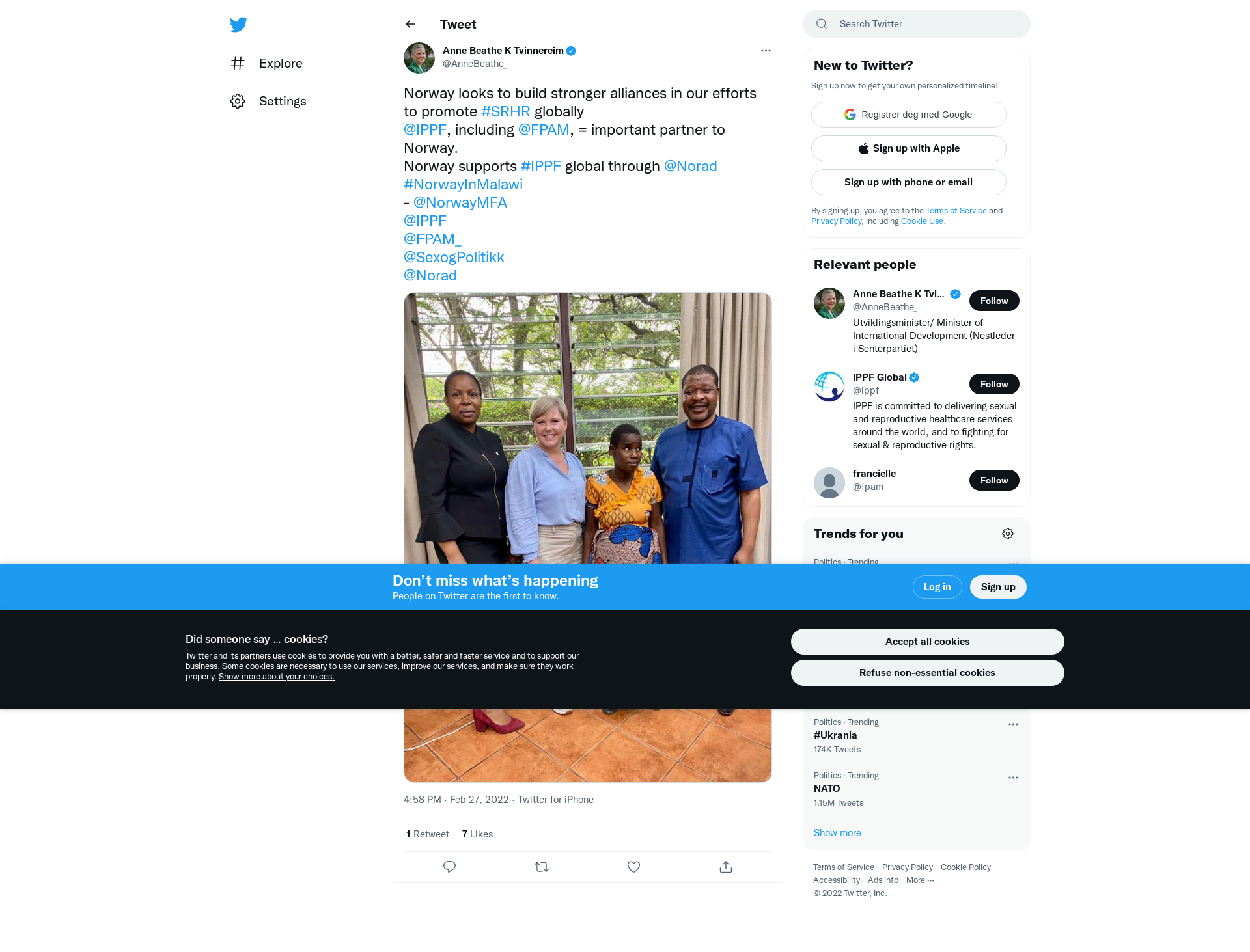 Norway looks to build stronger alliances in our efforts to promote #SRHR globally\n@IPPF, including @FPAM, = important partner to Norway.\nNorway supports #IPPF global through @Norad #NorwayInMalawi\n- @NorwayMFA \n@IPPF\n@FPAM_\n@SexogPolitikk\n@Norad https://t.co/ZowTsFexCx