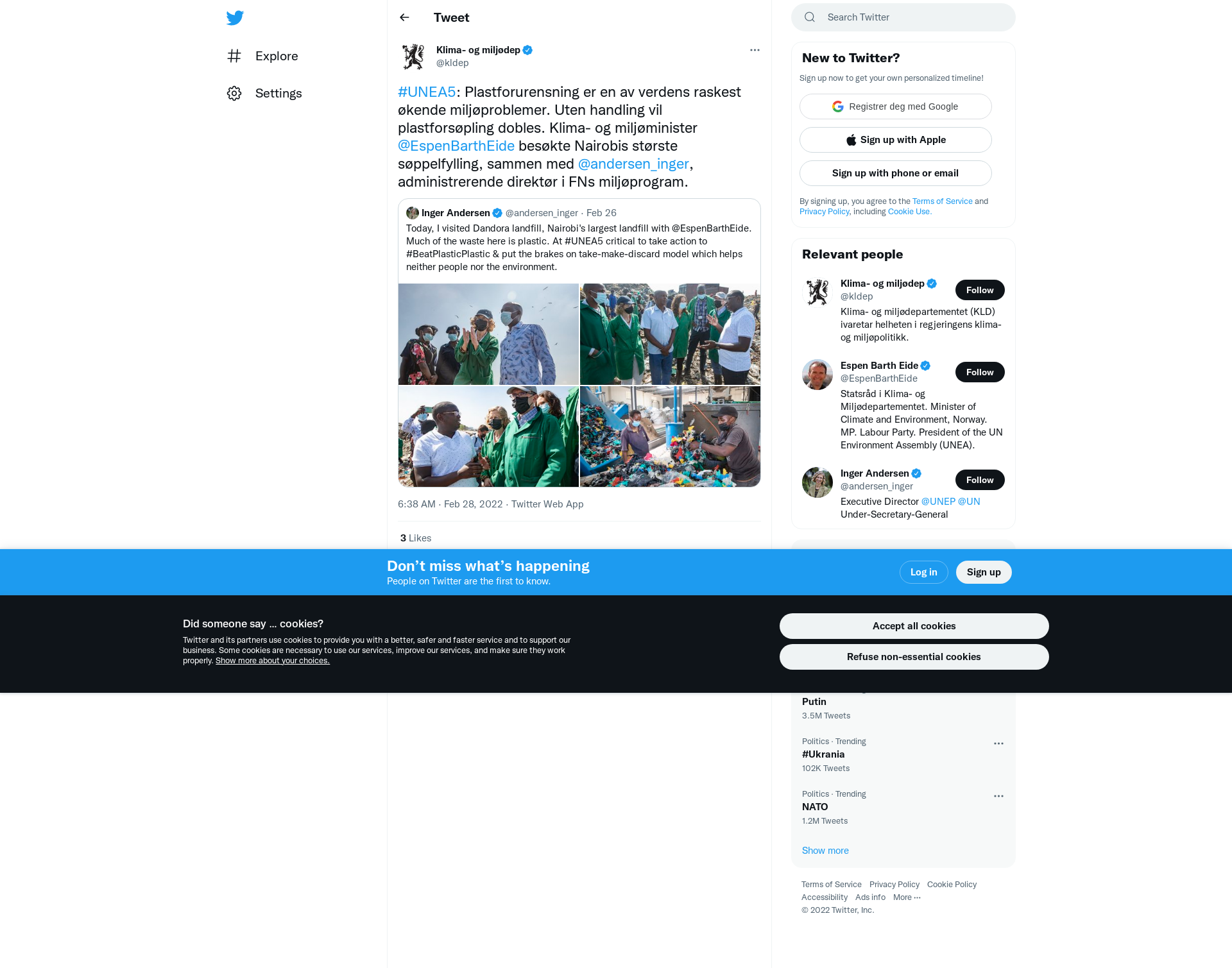 #UNEA5: Plastforurensning er en av verdens raskest økende miljøproblemer. Uten handling vil plastforsøpling dobles. Klima- og miljøminister @EspenBarthEide besøkte Nairobis største søppelfylling, sammen med @andersen_inger, administrerende direktør i FNs miljøprogram.