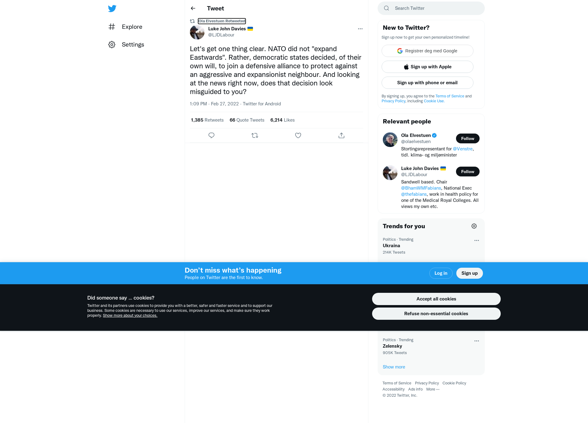 RT @LJDLabour: Let's get one thing clear. NATO did not "expand Eastwards". Rather, democratic states decided, of their own will, to join a defensive alliance to protect against an aggressive and expansionist neighbour. And looking at the news right now, does that decision look misguided to you?