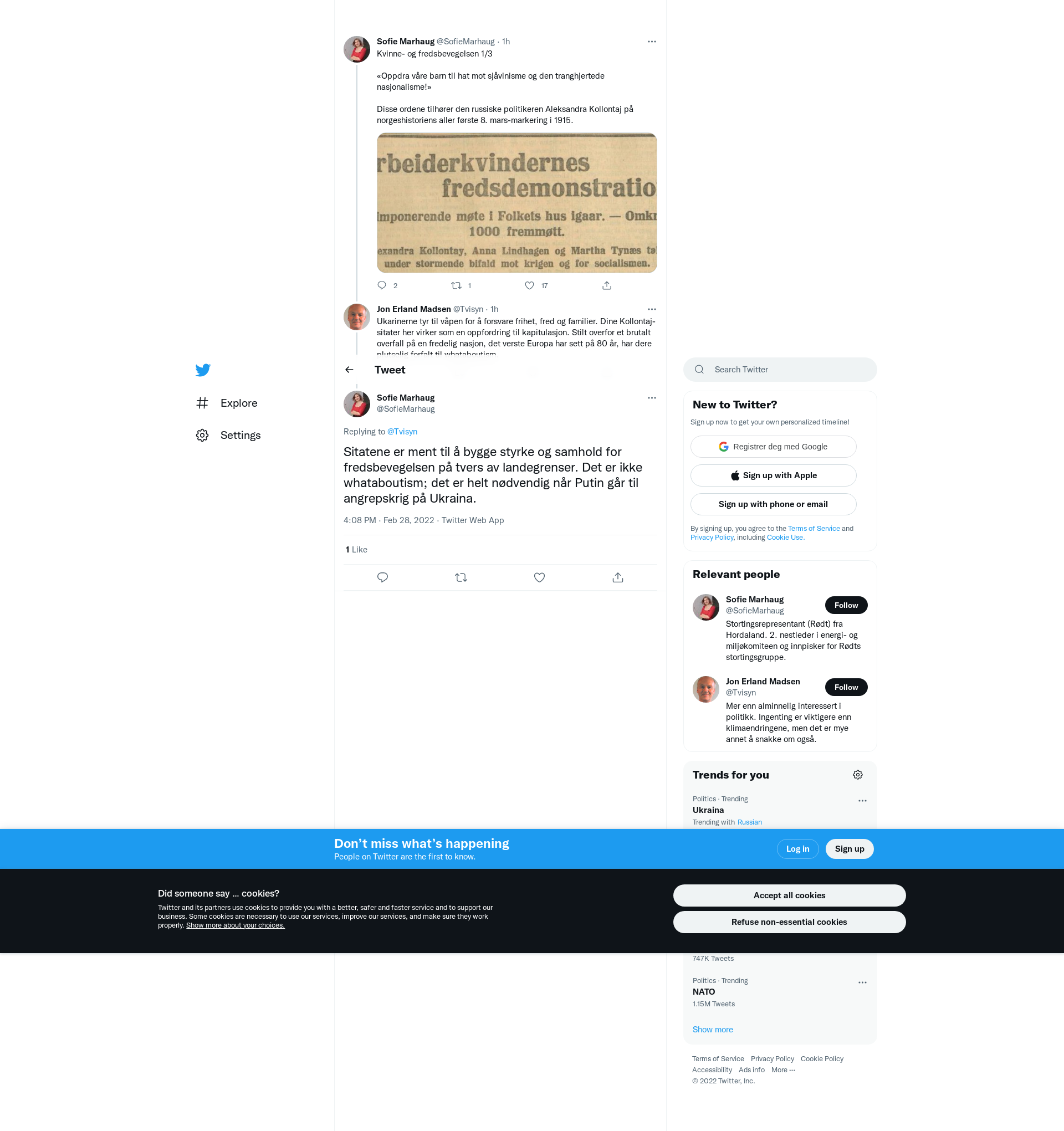 @Tvisyn Sitatene er ment til å bygge styrke og samhold for fredsbevegelsen på tvers av landegrenser. Det er ikke whataboutism; det er helt nødvendig når Putin går til angrepskrig på Ukraina.