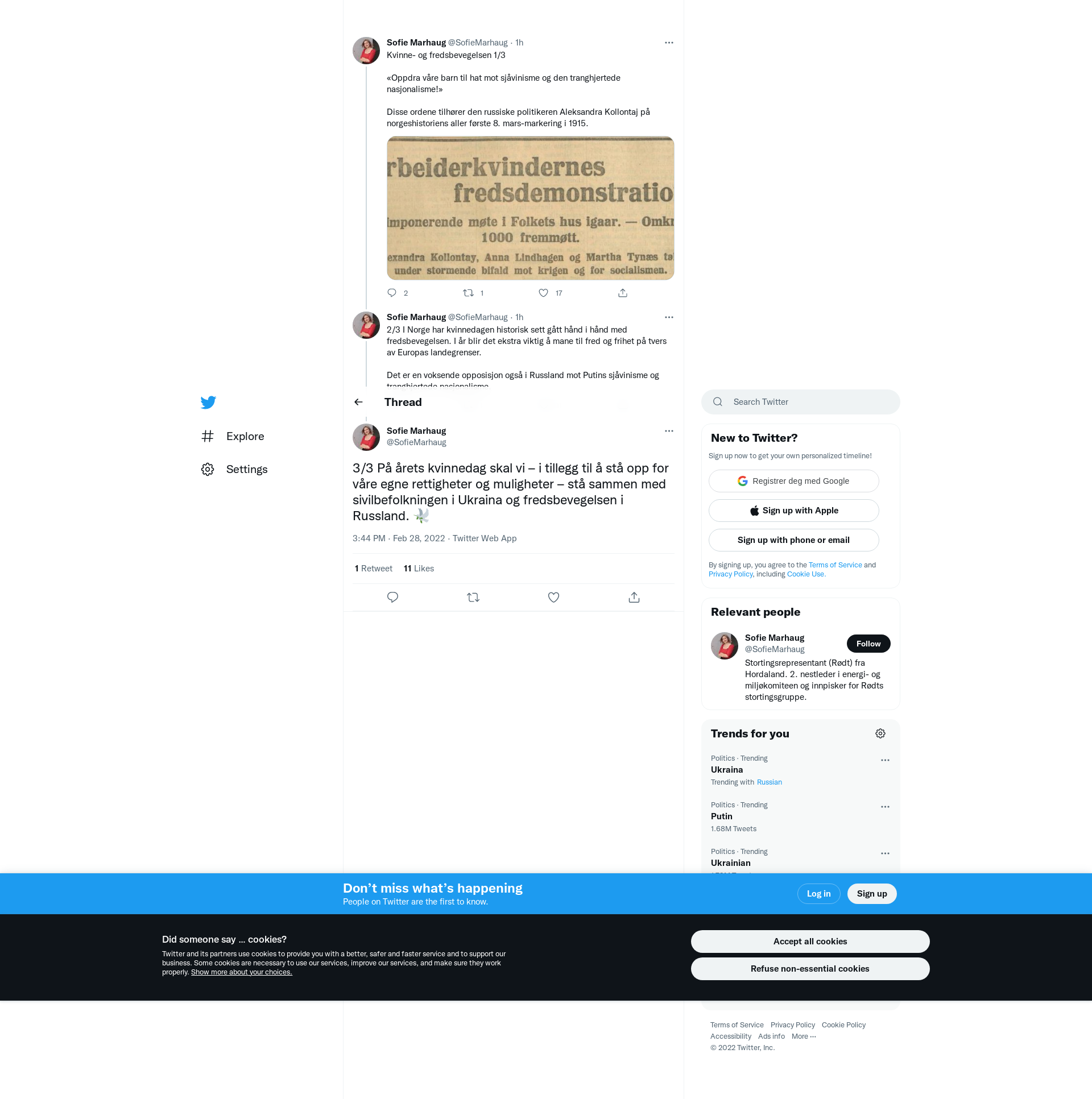 3/3 På årets kvinnedag skal vi – i tillegg til å stå opp for våre egne rettigheter og muligheter – stå sammen med sivilbefolkningen i Ukraina og fredsbevegelsen i Russland. 🕊