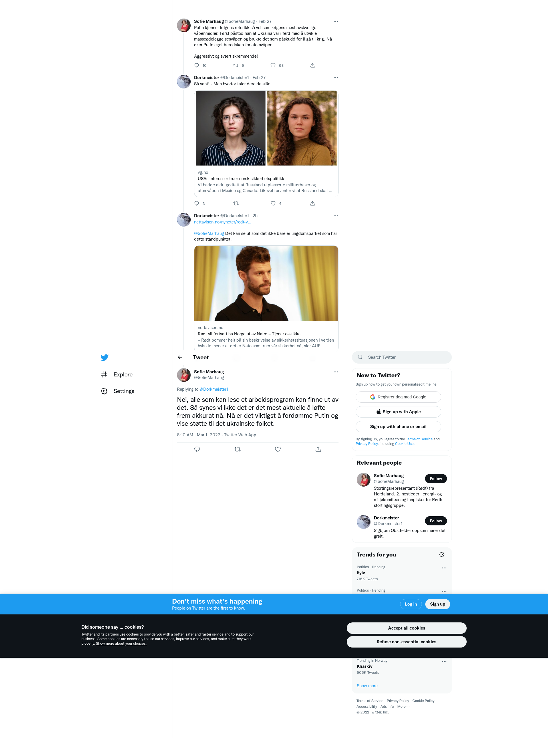 @Dorkmeister1 Nei, alle som kan lese et arbeidsprogram kan finne ut av det. Så synes vi ikke det er det mest aktuelle å løfte frem akkurat nå. Nå er det viktigst å fordømme Putin og vise støtte til det ukrainske folket.