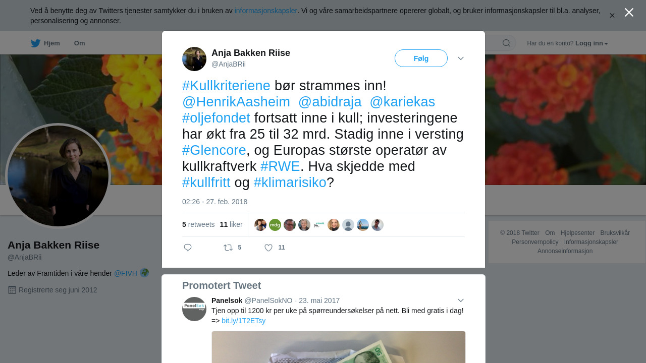 RT @AnjaBRii: #Kullkriteriene bør strammes inn! @HenrikAasheim @abidraja @kariekas #oljefondet fortsatt inne i kull; investerin… https://t.co/3hNPE300kT