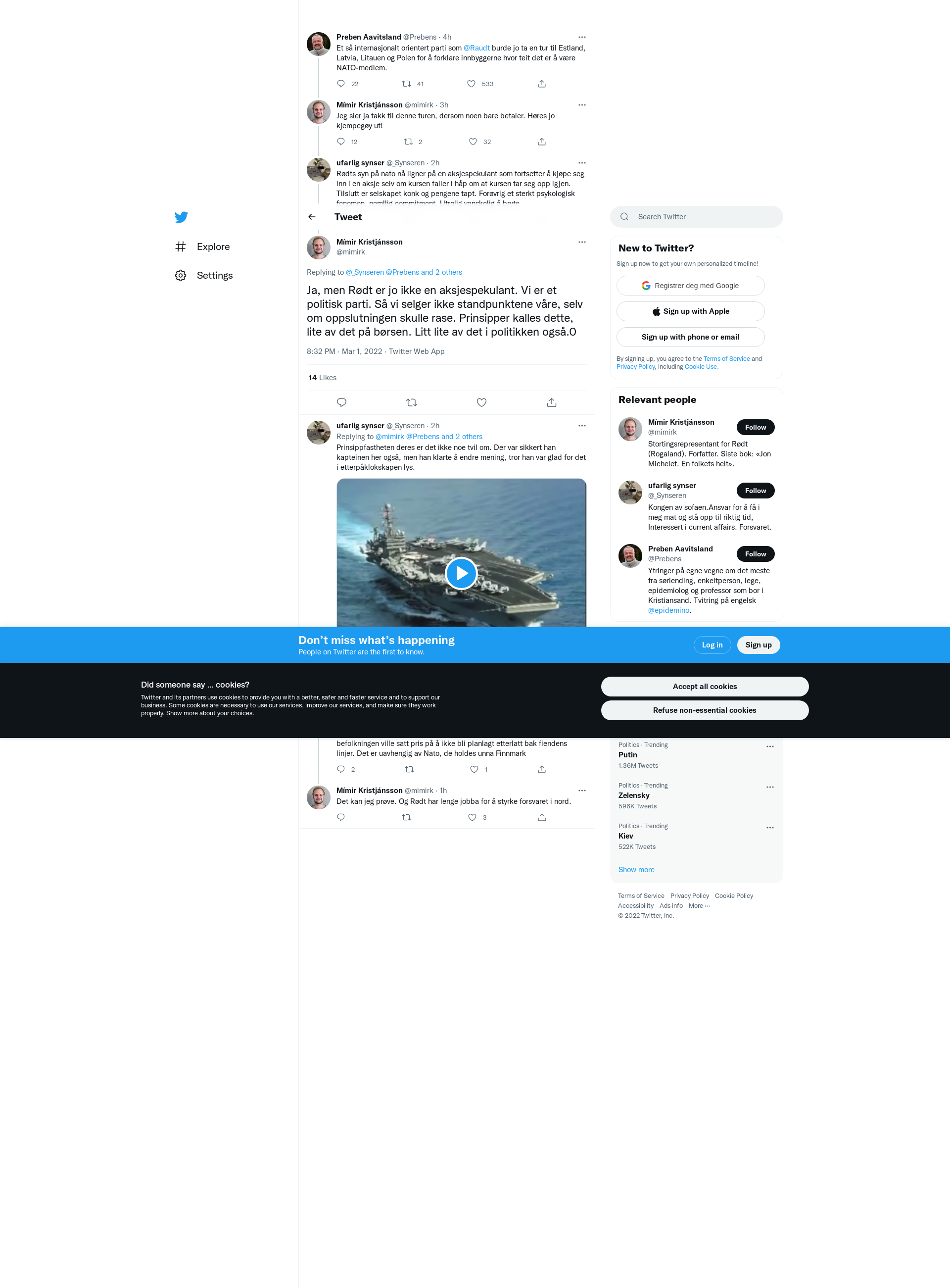 @_Synseren @Prebens @C_Askenberg @Raudt Ja, men Rødt er jo ikke en aksjespekulant. Vi er et politisk parti. Så vi selger ikke standpunktene våre, selv om oppslutningen skulle rase. Prinsipper kalles dette, lite av det på børsen. Litt lite av det i politikken også.0