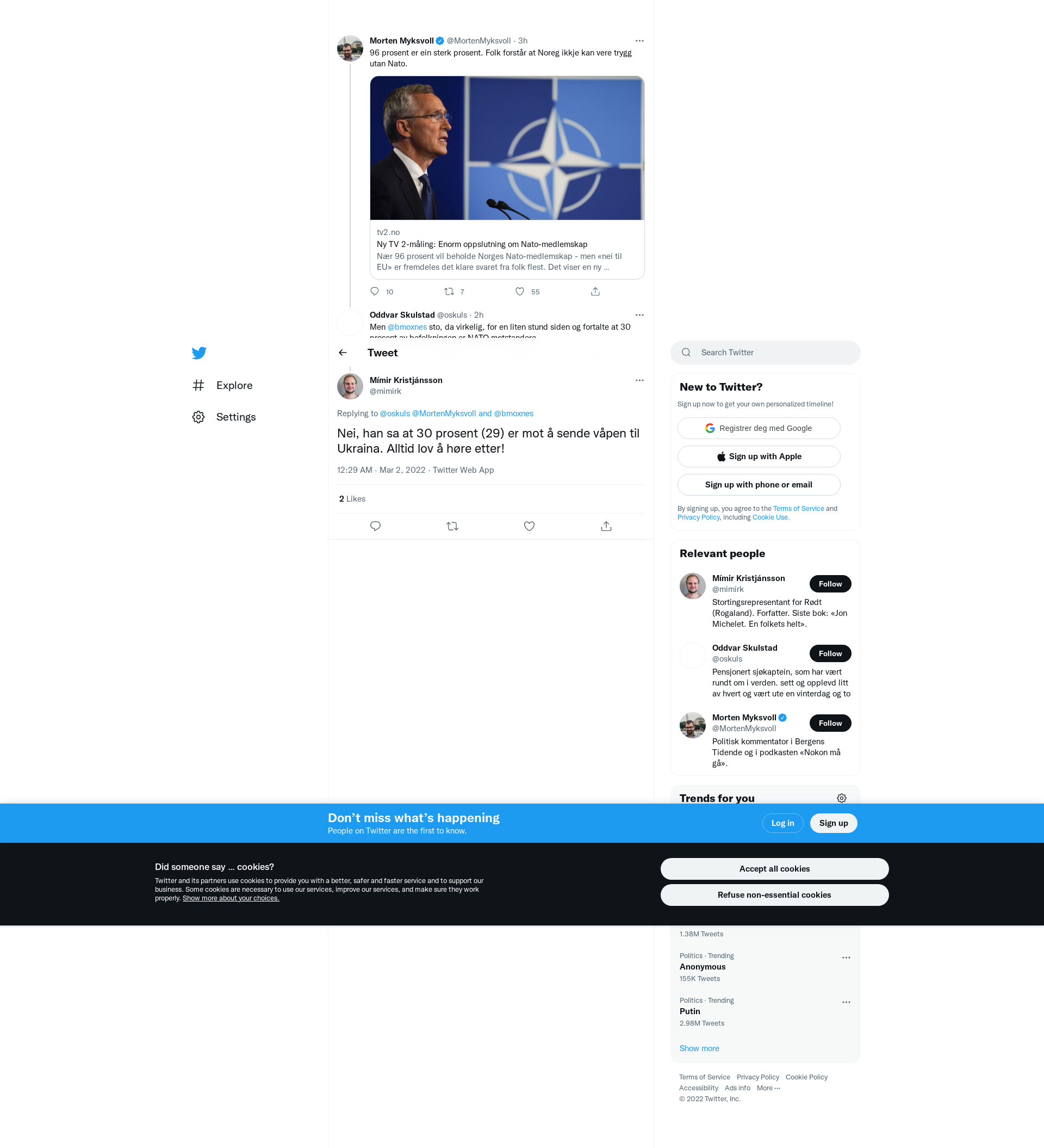 @oskuls @MortenMyksvoll @bmoxnes Nei, han sa at 30 prosent (29) er mot å sende våpen til Ukraina. Alltid lov å høre etter!