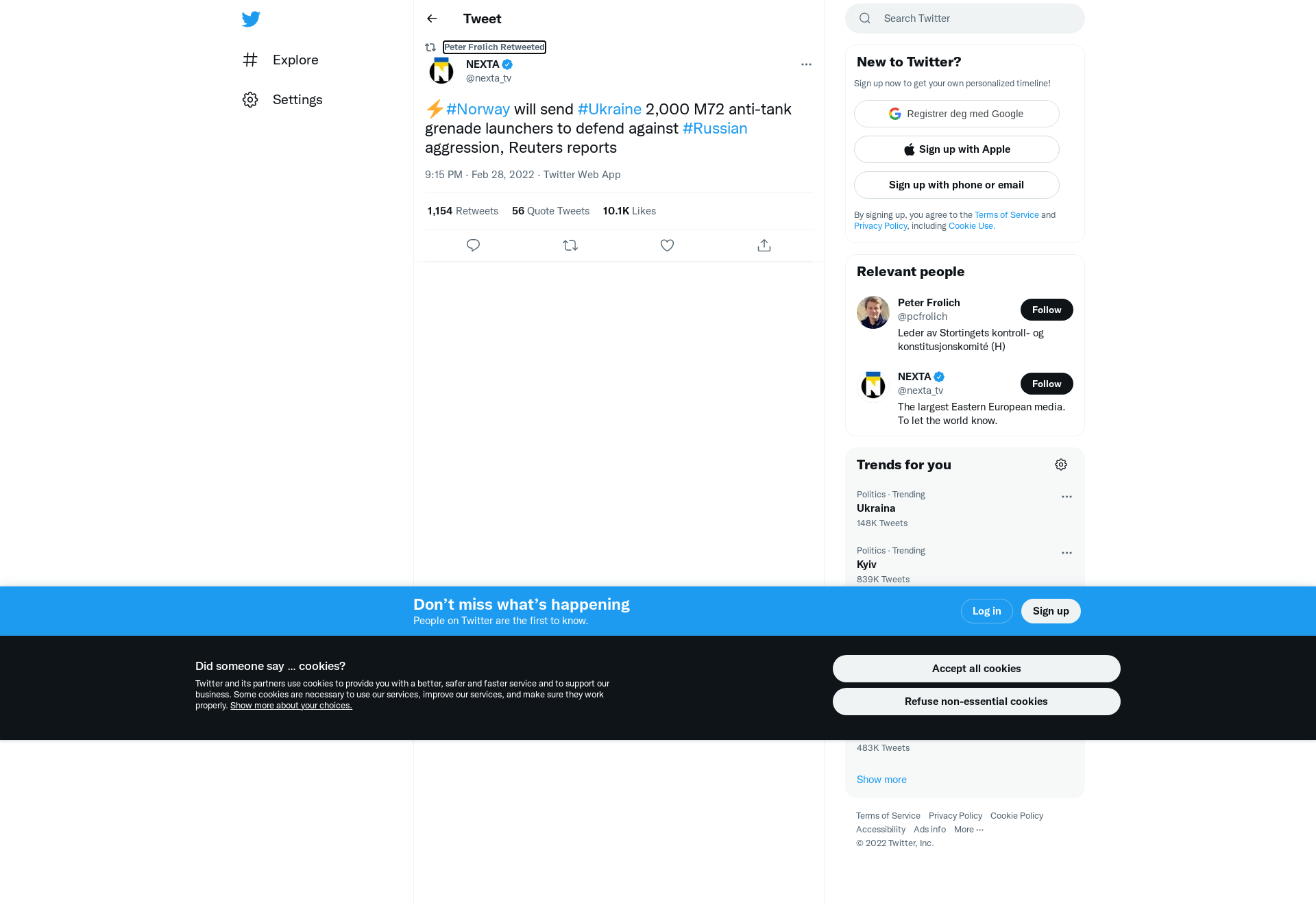 RT @nexta_tv: ⚡️#Norway will send #Ukraine 2,000 M72 anti-tank grenade launchers to defend against #Russian aggression, Reuters reports