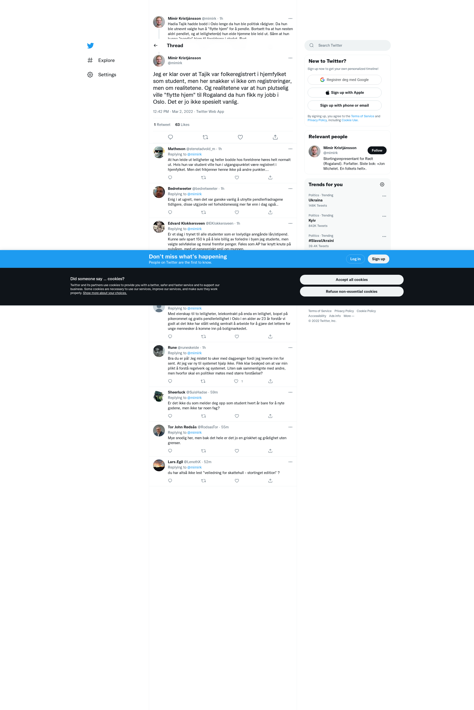Jeg er klar over at Tajik var folkeregistrert i hjemfylket som student, men her snakker vi ikke om registreringer, men om realitetene. Og realitetene var at hun plutselig ville "flytte hjem" til Rogaland da hun fikk ny jobb i Oslo. Det er jo ikke spesielt vanlig.
