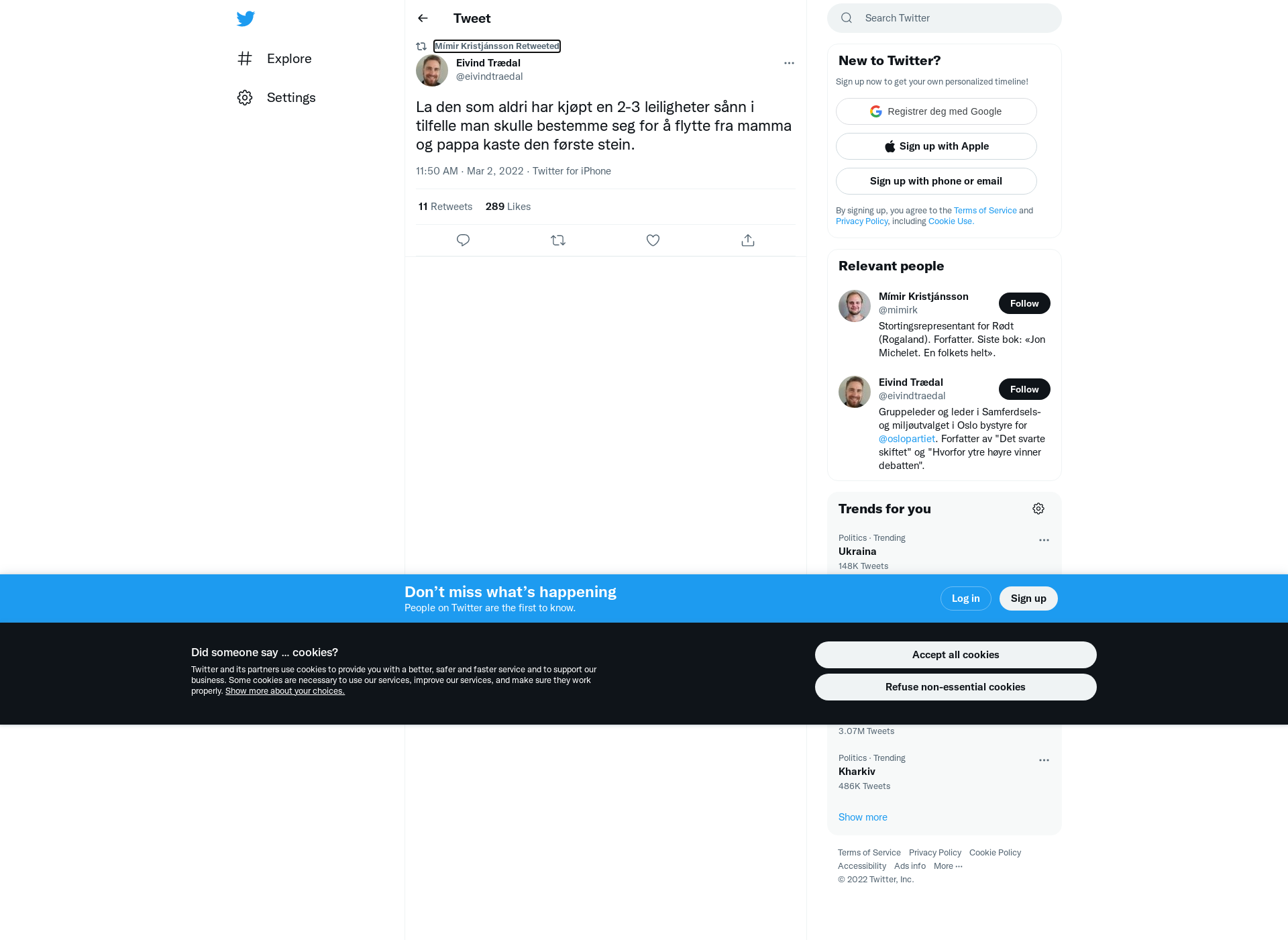 RT @eivindtraedal: La den som aldri har kjøpt en 2-3 leiligheter sånn i tilfelle man skulle bestemme seg for å flytte fra mamma og pappa kaste den første stein.