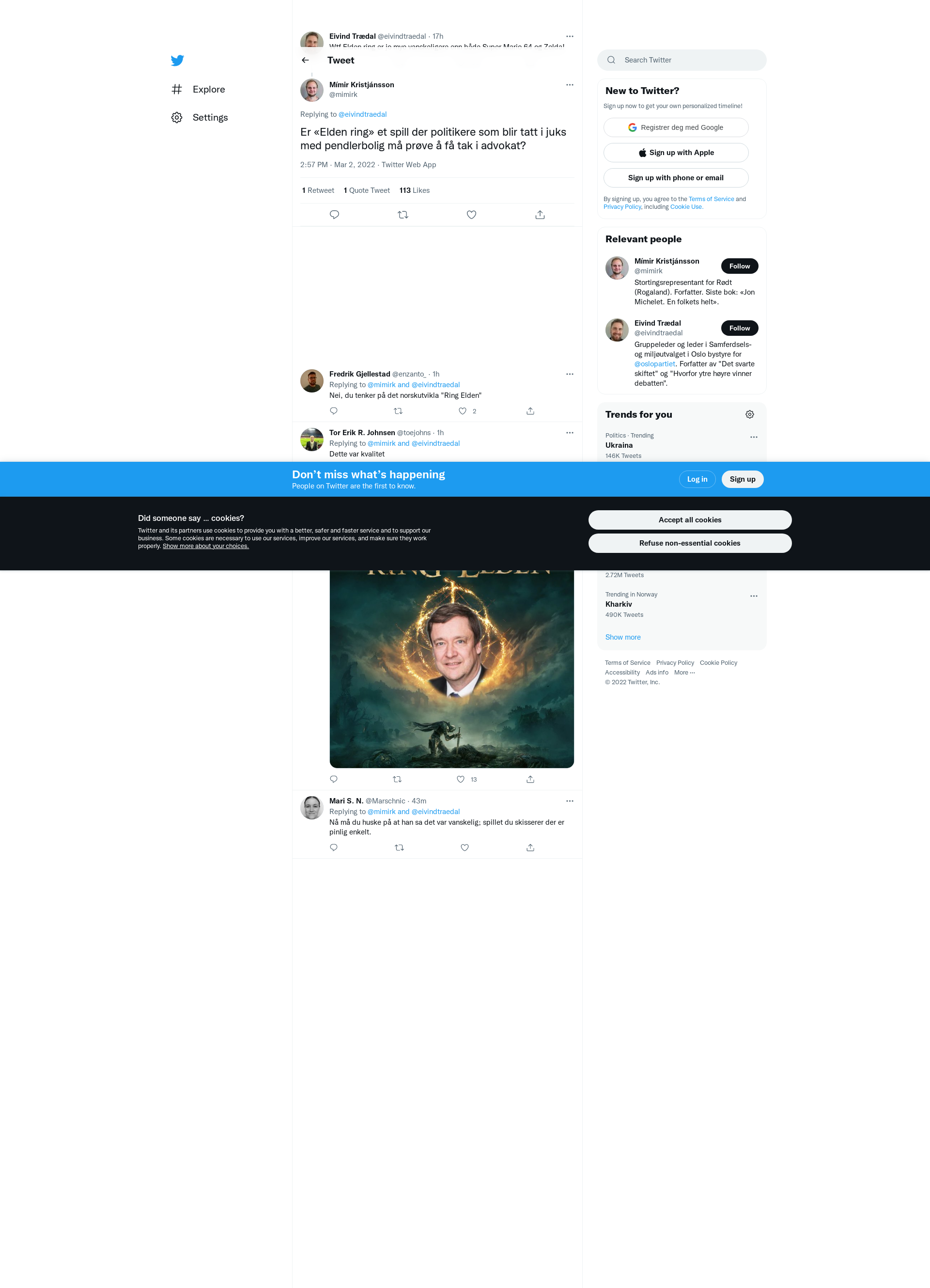 @eivindtraedal Er «Elden ring» et spill der politikere som blir tatt i juks med pendlerbolig må prøve å få tak i advokat?