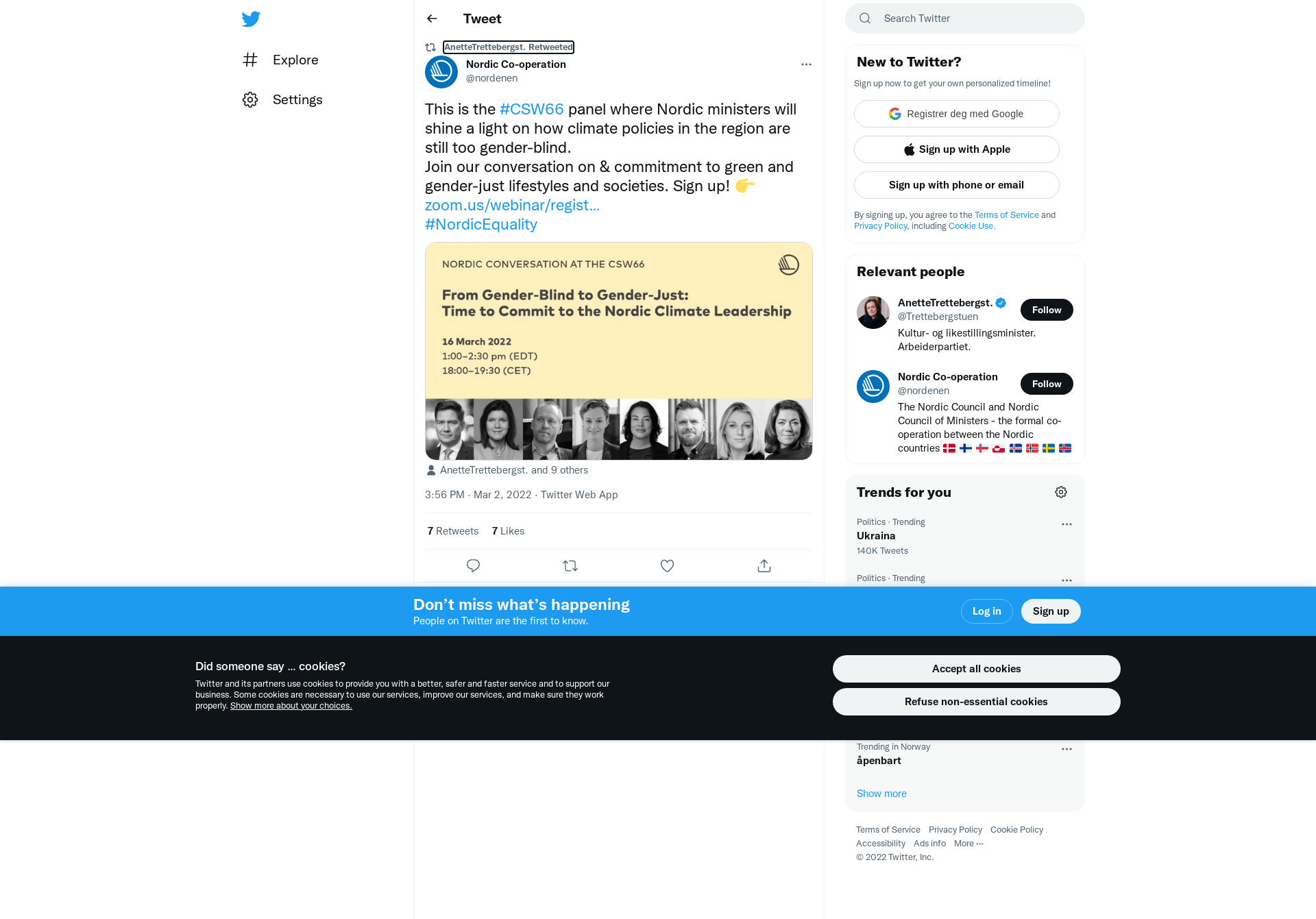 RT @nordenen: This is the #CSW66 panel where Nordic ministers will shine a light on how climate policies in the region are still too gender-blind.\nJoin our conversation on & commitment to green and gender-just lifestyles and societies. Sign up! 👉https://t.co/ozLszEjfqT\n#NordicEquality https://t.co/0qn0UGtPt8