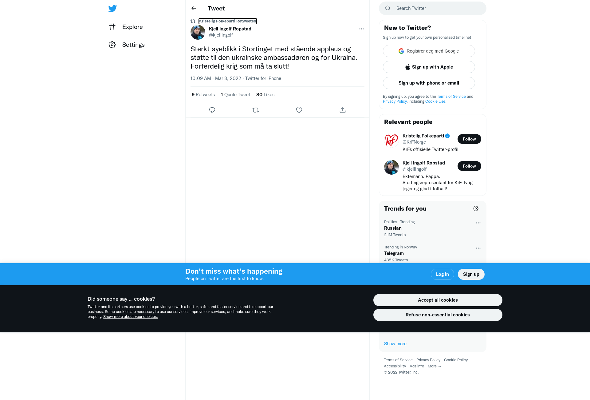 RT @kjellingolf: Sterkt øyeblikk i Stortinget med stående applaus og støtte til den ukrainske ambassadøren og for Ukraina. Forferdelig krig som må ta slutt!