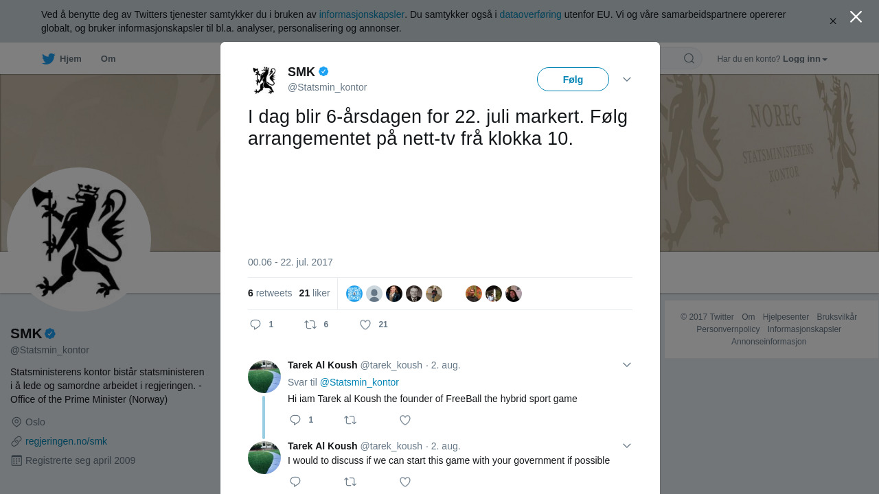 I dag blir 6-årsdagen for 22. juli markert. Følg arrangementet på nett-tv frå klokka 10. https://t.co/iz4r5Ww5cN