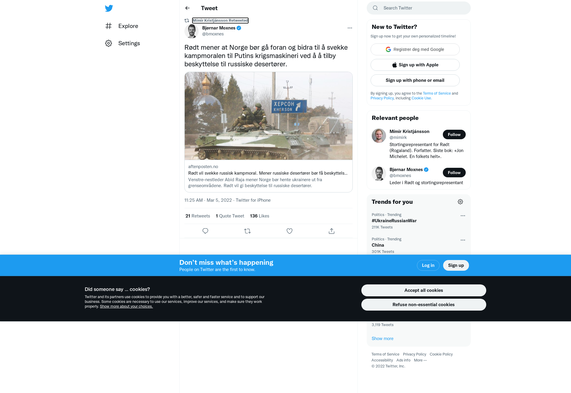 RT @bmoxnes: Rødt mener at Norge bør gå foran og bidra til å svekke kampmoralen til Putins krigsmaskineri ved å å tilby beskyttelse til russiske desertører. https://t.co/8GTg1PnV3c