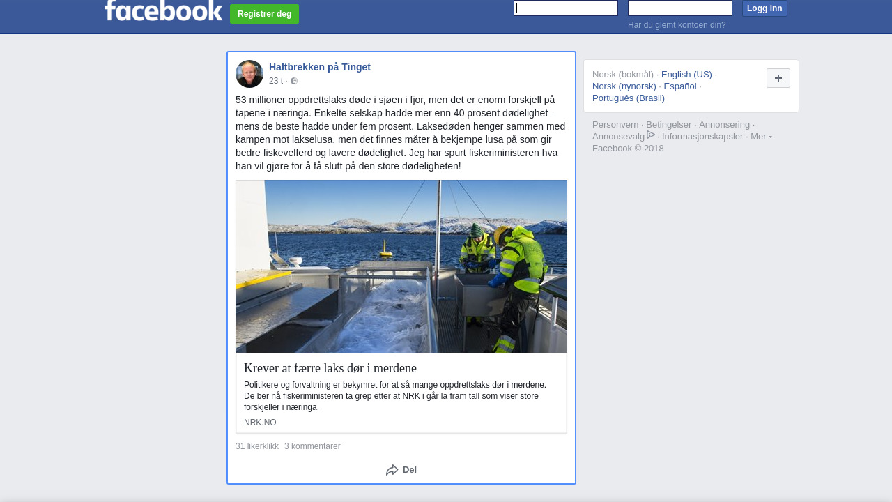 53 millioner oppdrettslaks døde i sjøen i fjor, men det er enorm forskjell på tapene i næringa. Enkelte selskap hadde mer enn 40 prosent dødelighet – mens de beste hadde under fem prosent. Laksedøden henger sammen med kampen mot lakselusa, men det finnes måter å bekjempe lusa på som gir bedre fiskevelferd og lavere dødelighet. Jeg har spurt fiskeriministeren hva han vil gjøre for å få slutt på den store dødeligheten!