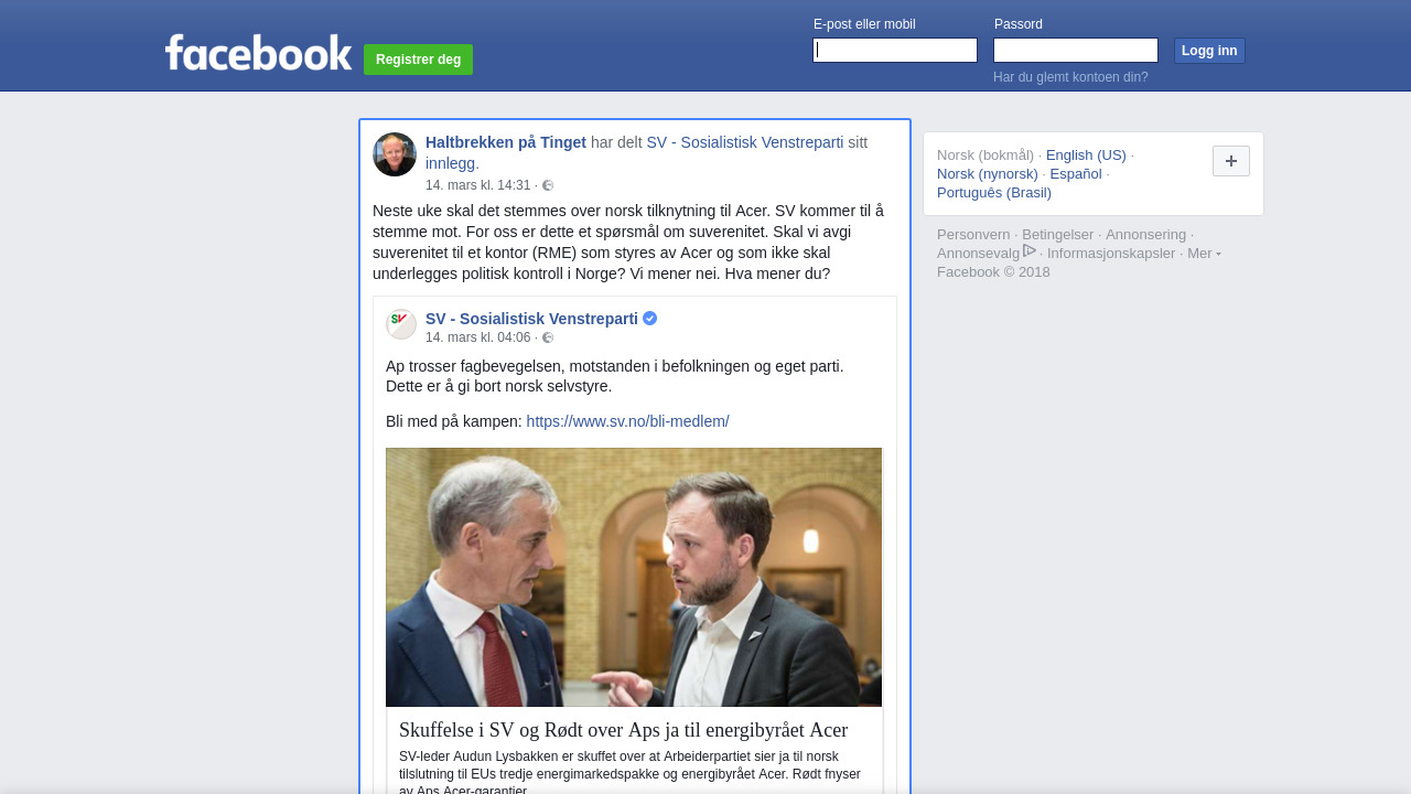 Neste uke skal det stemmes over norsk tilknytning til Acer. SV kommer til å stemme mot. For oss er dette et spørsmål om suverenitet. Skal vi avgi suverenitet til et kontor (RME) som styres av Acer og som ikke skal underlegges politisk kontroll i Norge? Vi mener nei. Hva mener du?