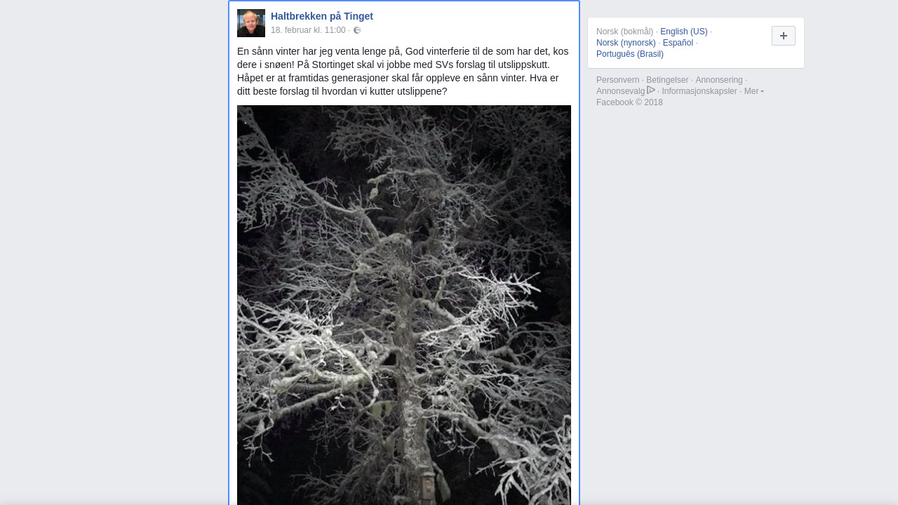 En sånn vinter har jeg venta lenge på, God vinterferie til de som har det, kos dere i snøen! På Stortinget skal vi jobbe med SVs forslag til utslippskutt. Håpet er at framtidas generasjoner skal får oppleve en sånn vinter. Hva er ditt beste forslag til hvordan vi kutter utslippene?