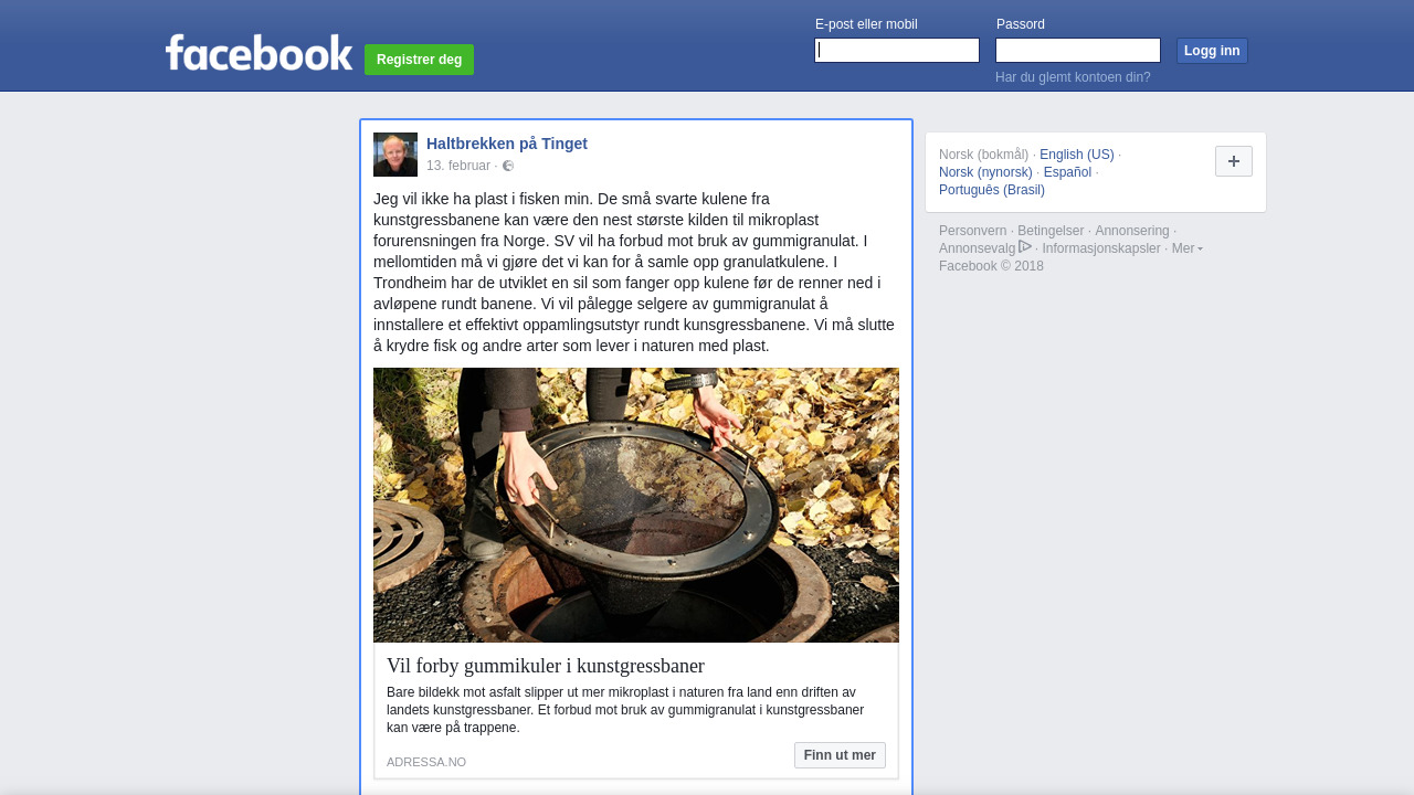 Jeg vil ikke ha plast i fisken min. De små svarte kulene fra kunstgressbanene kan være den nest største kilden til mikroplast forurensningen fra Norge. SV vil ha forbud mot bruk av gummigranulat. I mellomtiden må vi gjøre det vi kan for å samle opp granulatkulene. I Trondheim har de utviklet en sil som fanger opp kulene før de renner ned i avløpene rundt banene. Vi vil pålegge selgere av gummigranulat å innstallere et effektivt oppamlingsutstyr rundt kunsgressbanene. Vi må slutte å krydre fisk og andre arter som lever i naturen med plast.
