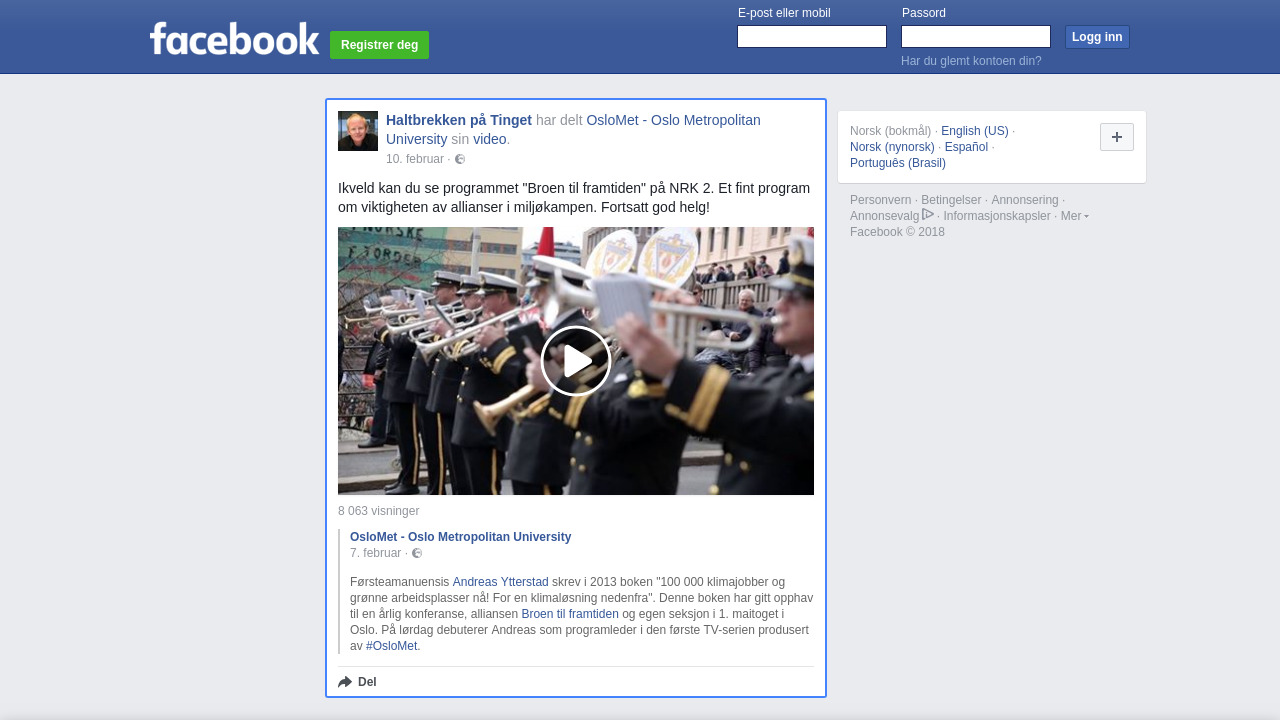 Førsteamanuensis Andreas Ytterstad skrev i 2013 boken "100 000 klimajobber og grønne arbeidsplasser nå! For en klimaløsning nedenfra". Denne boken har gitt opphav til en årlig konferanse, alliansen Broen til framtiden og egen seksjon i 1. maitoget i Oslo. På lørdag debuterer Andreas som programleder i den første TV-serien produsert av #OsloMet.
