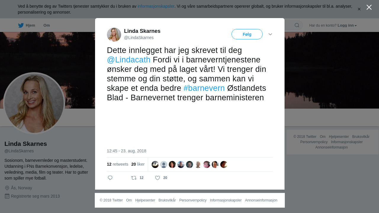 RT @LindaSkarnes: Dette innlegget har jeg skrevet til deg @Lindacath Fordi vi i barneverntjenestene ønsker deg med på laget vårt! Vi trenger din stemme og din støtte, og sammen kan vi skape et enda bedre #barnevern Østlandets Blad - Barnevernet trenger barneministeren https://t.co/vG6pgXOum9