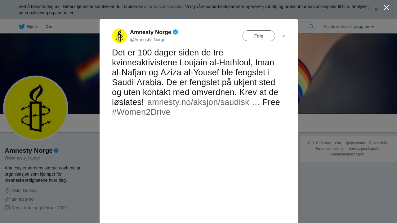 RT @Amnesty_Norge: Det er 100 dager siden de tre kvinneaktivistene Loujain al-Hathloul, Iman al-Nafjan og Aziza al-Yousef ble fengslet i Saudi-Arabia. De er fengslet på ukjent sted og uten kontakt med omverdnen. Krev at de løslates! https://t.co/4MlnqSdjoP Free #Women2Drive