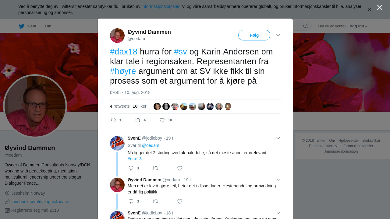 #dax18 hurra for #sv og Karin Andersen om klar tale i regionsaken. Representanten fra #høyre argument om at SV ikke fikk til sin prosess som et argument for å kjøre på