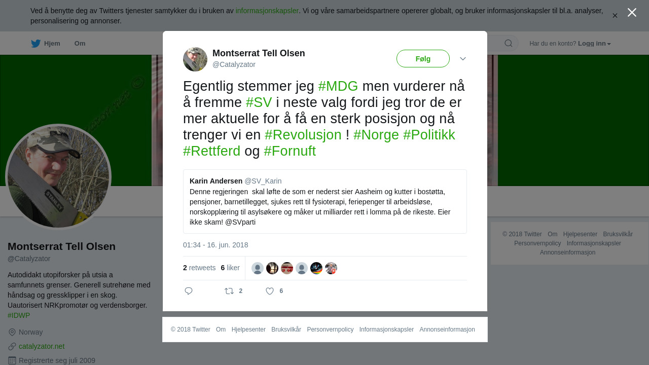 RT @Catalyzator: Egentlig stemmer jeg #MDG men vurderer nå å fremme #SV i neste valg fordi jeg tror de er mer aktuelle for å få en s… https://t.co/SVivzNoDVW