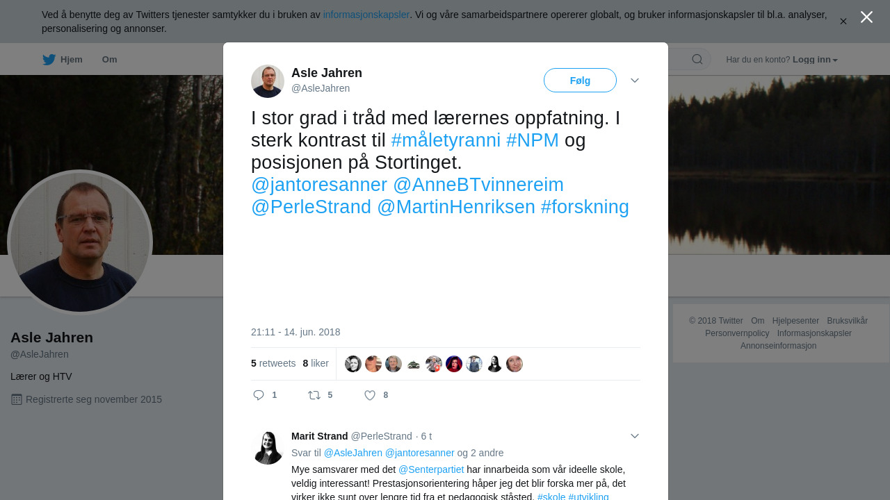 RT @AsleJahren: I stor grad i tråd med lærernes oppfatning. I sterk kontrast til #måletyranni #NPM og posisjonen på Stortinget. @jantoresa…