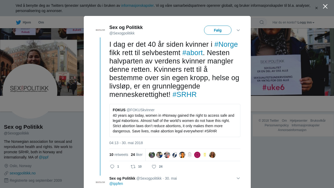 RT @Sexogpolitikk: I dag er det 40 år siden kvinner i #Norge fikk rett til selvbestemt #abort. Nesten halvparten av verdens kvinner ma… https://t.co/vgTS19QRU0