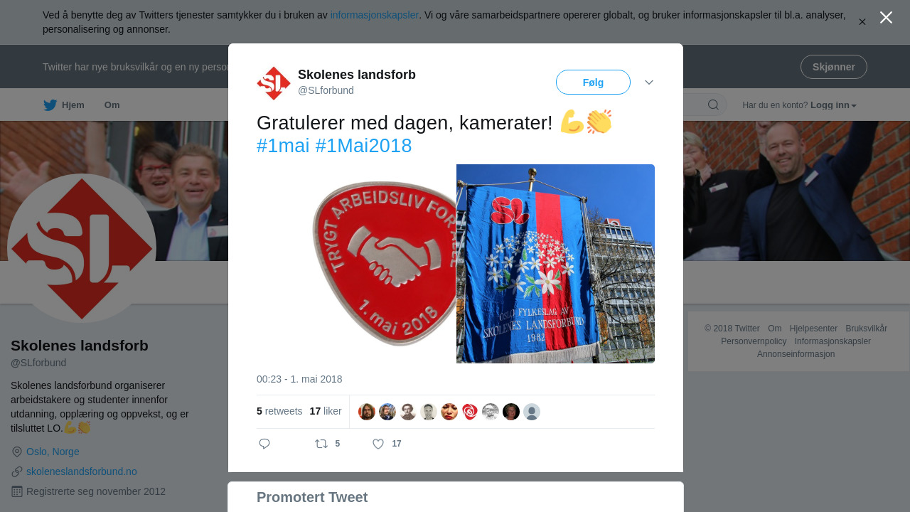 RT @SLforbund: Gratulerer med dagen, kamerater! 💪👏 #1mai #1Mai2018 https://t.co/ZuZQdyCEkk