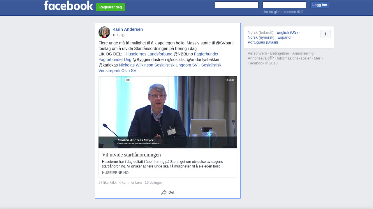 Huseierne har i dag deltatt i åpen høring på Stortinget om utvidelse av dagens startlånordning. Vi ønsker at flere unge skal få muligheten til å eie egen bolig.