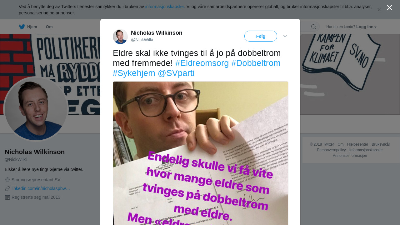 RT @NickWilki: Eldre skal ikke tvinges til å jo på dobbeltrom med fremmede! #Eldreomsorg #Dobbeltrom #Sykehjem @SVparti https://t.co/6MdffWTqWV