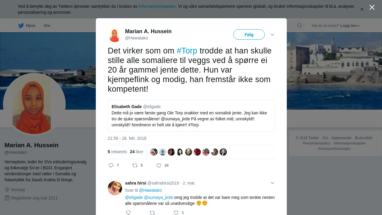 RT @Hawatako: Det virker som om #Torp trodde at han skulle stille alle somaliere til veggs ved å spørre ei 20 år gammel jente det… https://t.co/EVvqRSZJpW