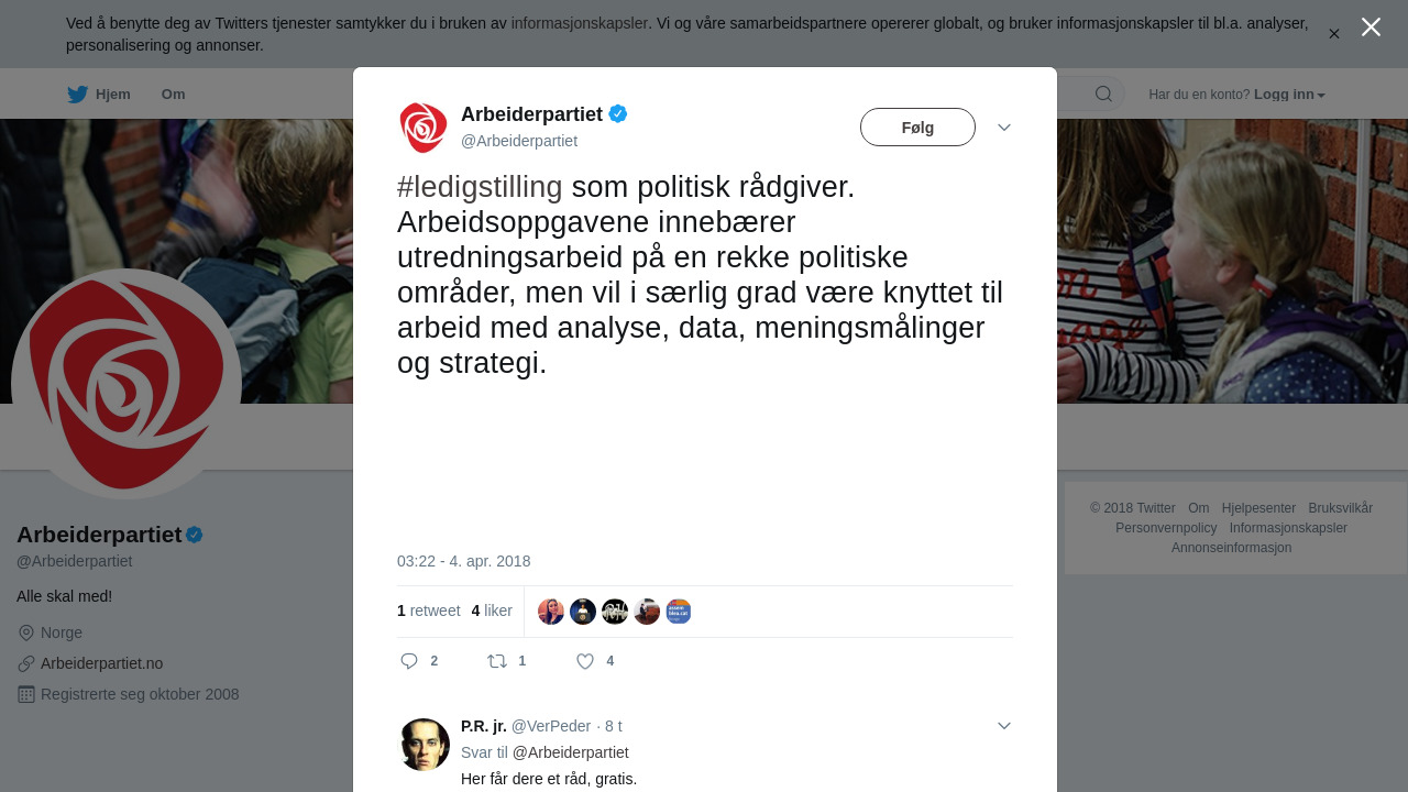 #ledigstilling som politisk rådgiver. Arbeidsoppgavene innebærer utredningsarbeid på en rekke politiske områder, men vil i særlig grad være knyttet til arbeid med analyse, data, meningsmålinger og strategi. https://t.co/AFVlNR2Nlx