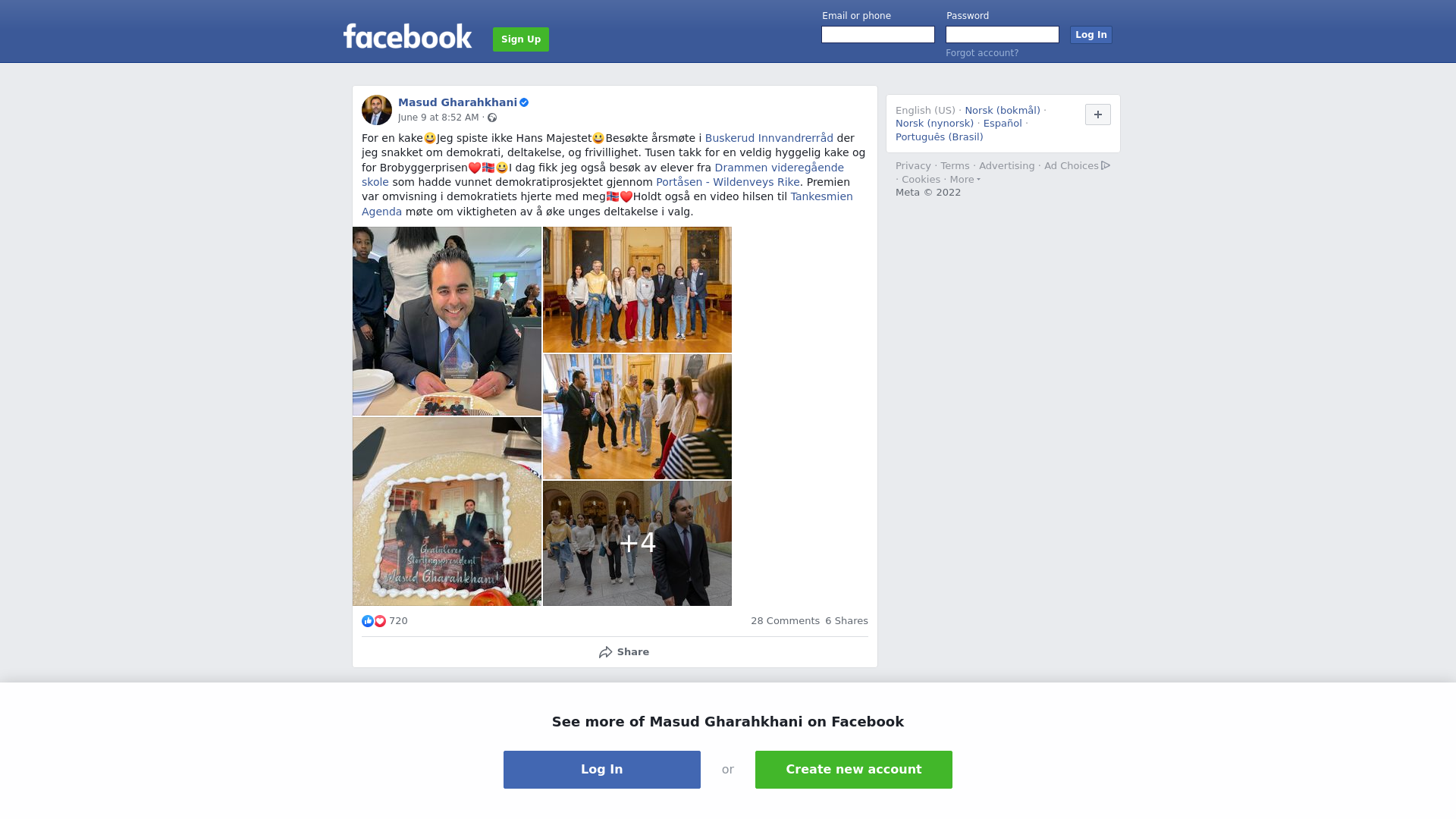 For en kake😃Jeg spiste ikke Hans Majestet😃Besøkte årsmøte i Buskerud Innvandrerråd der jeg snakket om demokrati, deltakelse, og frivillighet. Tusen takk for en veldig hyggelig kake og for Brobyggerprisen❤️🇳🇴😃I dag fikk jeg også besøk av elever fra Drammen videregående skole som hadde vunnet demokratiprosjektet gjennom Portåsen - Wildenveys Rike. Premien var omvisning i demokratiets hjerte med meg🇳🇴❤️Holdt også en video hilsen til Tankesmien Agenda møte om viktigheten av å øke unges deltakelse i valg.