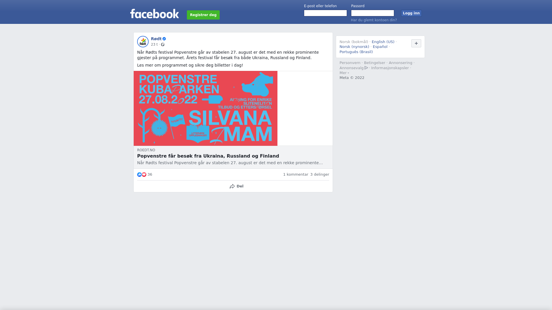 Når Rødts festival Popvenstre går av stabelen 27. august er det med en rekke prominente gjester på programmet. Årets festival får besøk fra både Ukraina, Russland og Finland. \n\nLes mer om programmet og sikre deg billetter i dag!