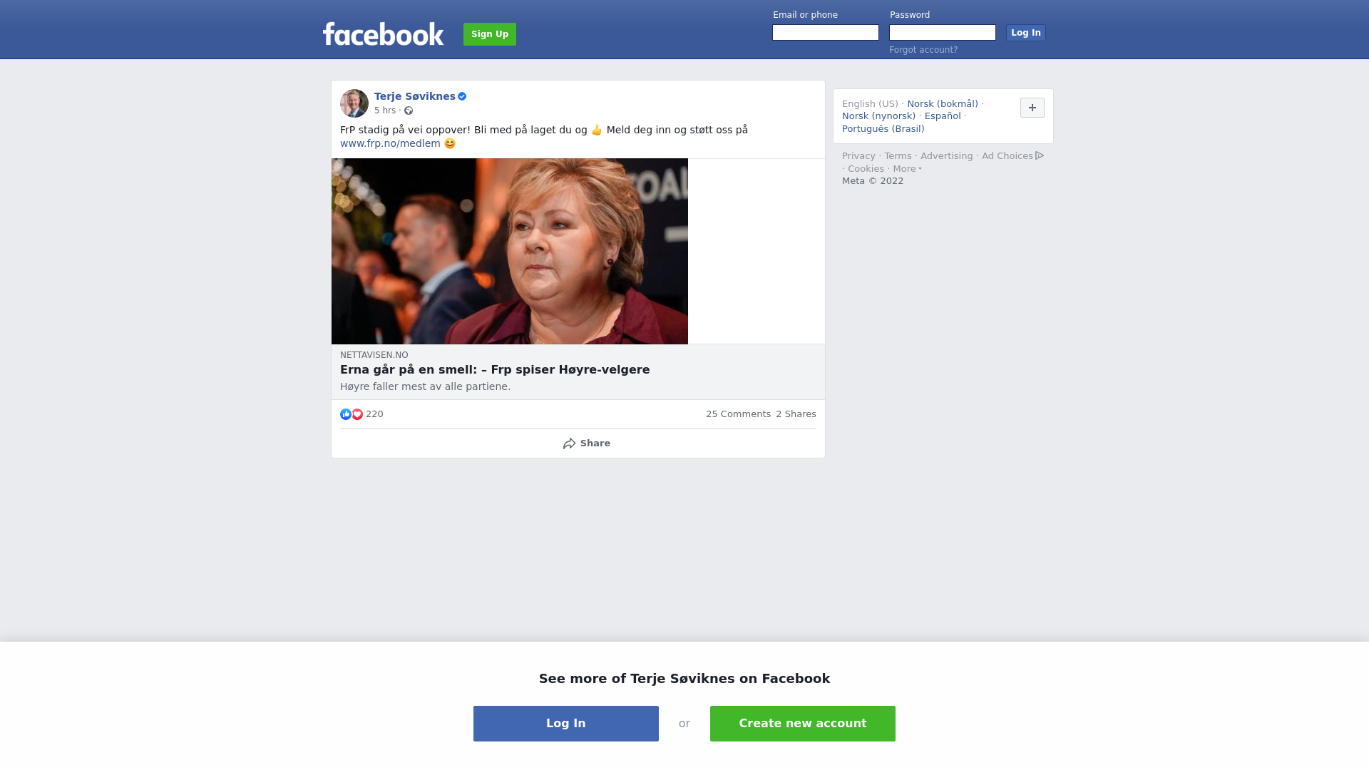 Erna går på en smell: – Frp spiser Høyre-velgere