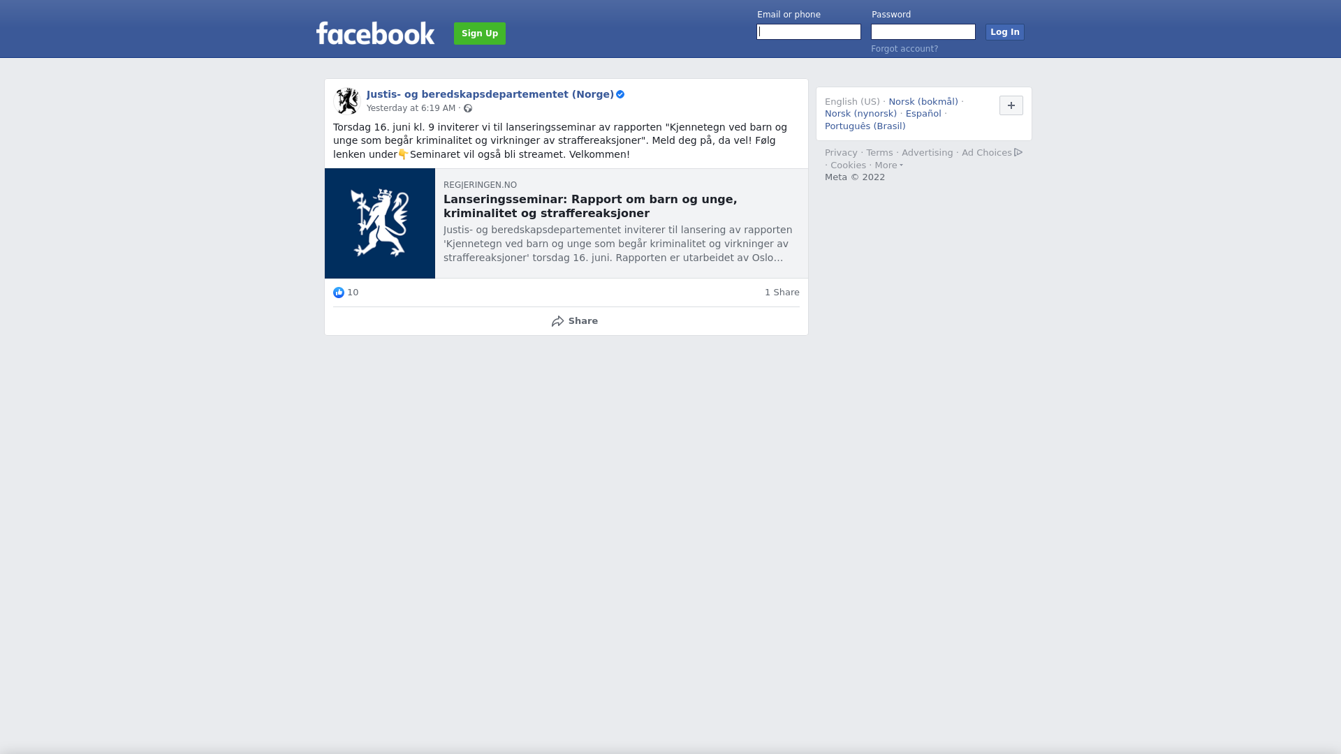 Lanseringsseminar: Rapport om barn og unge, kriminalitet og straffereaksjoner