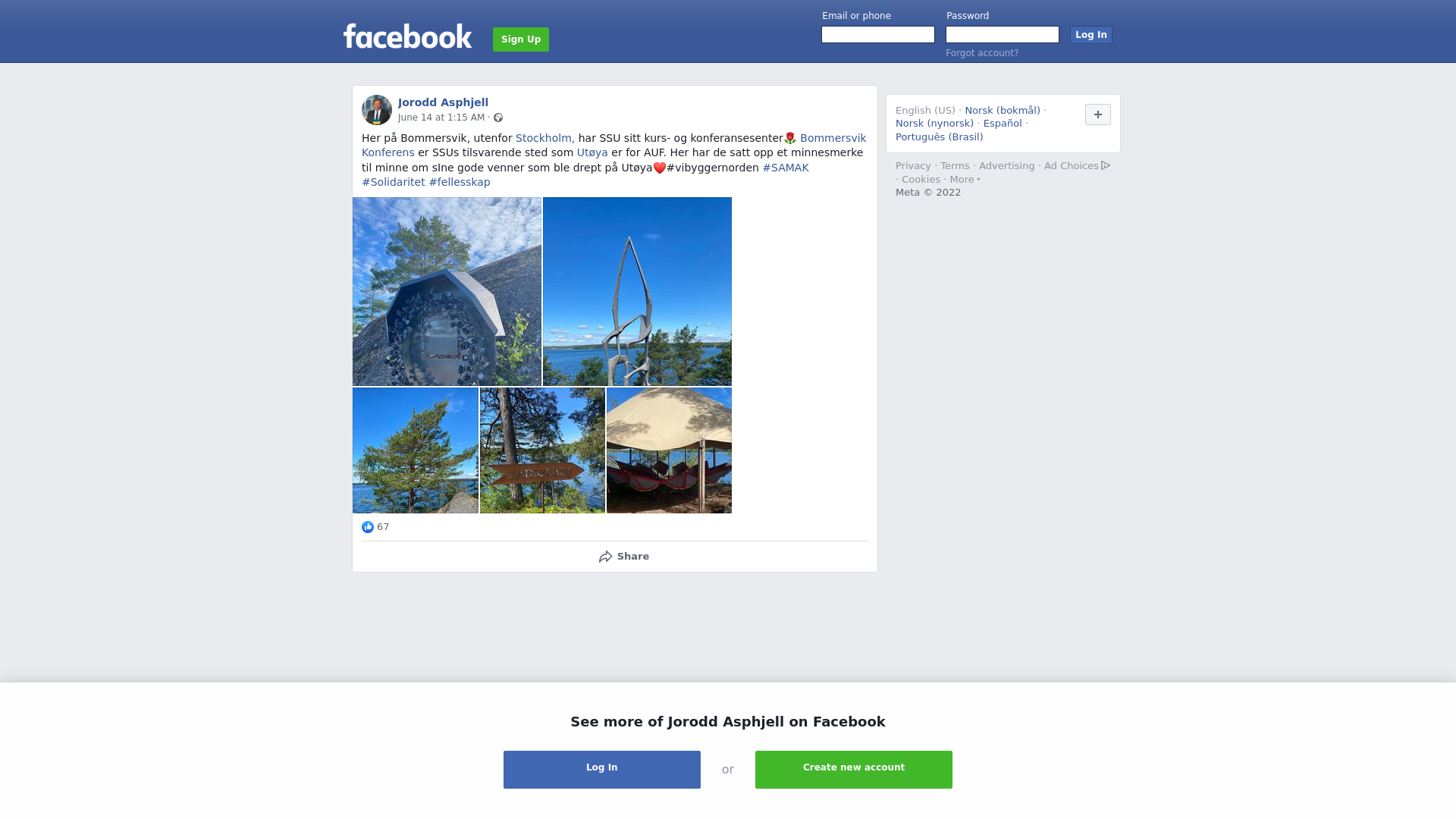 Her på Bommersvik, utenfor Stockholm, har SSU sitt kurs- og konferansesenter🌹 Bommersvik Konferens er SSUs tilsvarende sted som Utøya er for AUF. Her har de satt opp et minnesmerke til minne om sIne gode venner som ble drept på Utøya❤️#vibyggernorden #SAMAK #Solidaritet #fellesskap