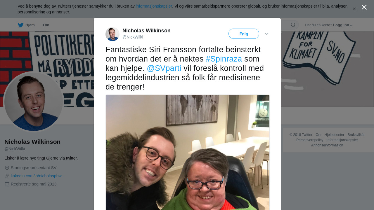 RT @NickWilki: Fantastiske Siri Fransson fortalte beinsterkt om hvordan det er å nektes #Spinraza som kan hjelpe. @SVparti vil for… https://t.co/elPYiOBwuT