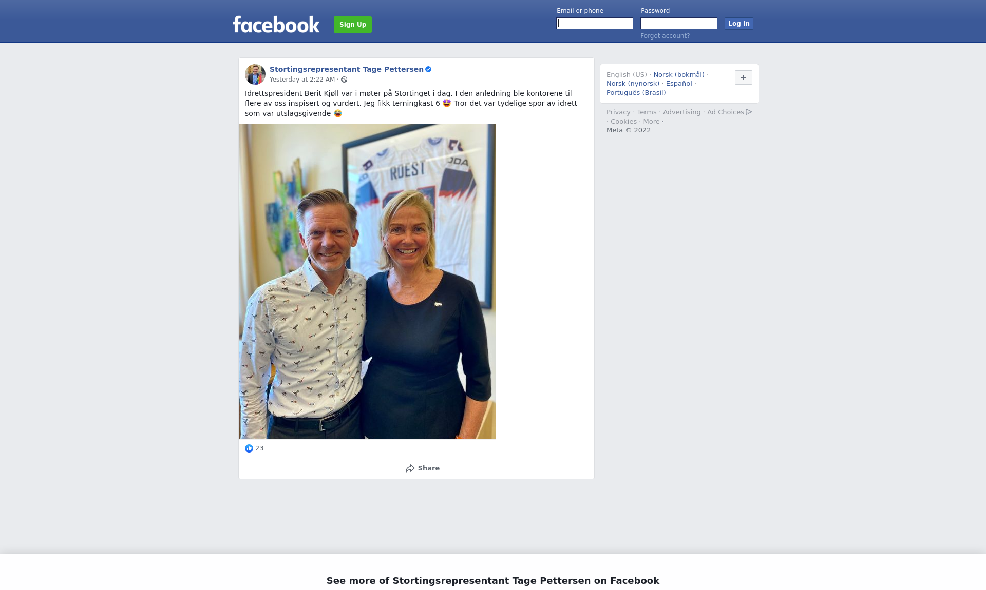 Idrettspresident Berit Kjøll var i møter på Stortinget i dag. I den anledning ble kontorene til flere av oss inspisert og vurdert. Jeg fikk terningkast 6 🤩 Tror det var tydelige spor av idrett som var utslagsgivende 😂